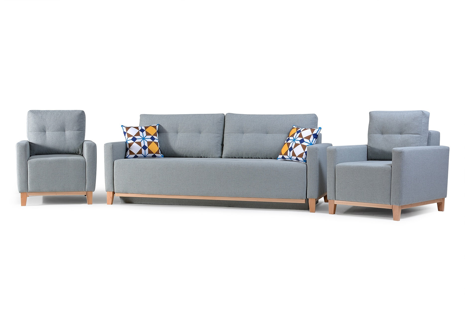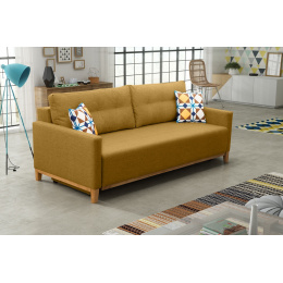 ARIEL je stylová pohovka do obývacího pokoje nebo i do soukromé pracovny, která zaujme jednoduchým tvarem a moderním, ale pěkným provedením. Pohovka s bočnicemi je na opěradle doplněna dvěma podlouhlými polštáři s dekorativním prošíváním, které zaručují komfort a pohodlí i při dlouhém odpočinku. Rozkládací pohovka je vybavena prostorným kontejnerem na lůžkoviny a má také funkci spaní, takže nábytek lze rozložit. Součástí pohovky ARIEL jsou dva dekorativní polštáře, které podtrhují modernistický charakter celé konstrukce. Volně stojící kus nábytku doplňuje podstavec z přírodního dřeva, který čalouněným prvkům dodává lehkost a svěží vzhled. Model ARIEL se vyrábí na individuální objednávku, takže jej lze přizpůsobit individuálním preferencím, mimo jiné výběrem vhodné barvy ze vzorníku barev, který je k dispozici na webových stránkách. Celá spací plocha pohovky je vyplněna vlnitou pružinou, která není ani příliš měkká, ani příliš tvrdá. Stylová pohovka ARIEL vám zaručí nejen pohodlný odpočinek, ale v moderně zařízeném prostoru bude působit i esteticky.