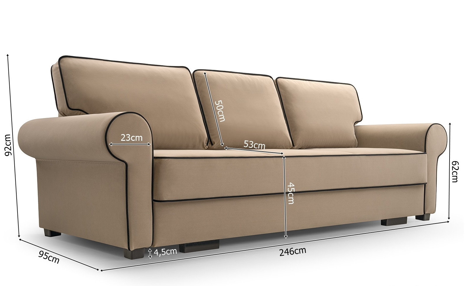 | Hloubka sedu s polštáři | 95 cm |