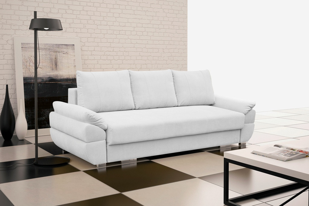 Třímístná pohovka BENITA s tvarovanými bočnicemi bude dokonalým kusem nábytku do obývacího prostoru, obývacího pokoje nebo i soukromé pracovny. Pohovka se stane místem pro rodinná setkání, odpočinek u televize nebo s knihou v ruce a také místem pro regenerační spánek. Díky výše zmíněným bočnicím si můžete na pohovce v klidu zdřímnout - poslouží vám jako opěrka hlavy a umožní vám pohodlný a bezpečný odpočinek. Rozkládací volně stojící pohovka je vybavena třemi masivními polštáři, na kterých se můžete pohodlně opřít a plně relaxovat. Rozkládací pohovku BENITA lze čalounit v široké škále barev dostupných ve vzorníku. Pohovka je vybavena systémem asistovaného rozkladu DL, díky kterému se rychle a efektivně změní z obývacího nábytku na lůžko. Nábytek nese dřevěný rám a chromované nohy, díky nimž je zaručena jeho odolnost a nadprůměrná stabilita. Pohovka je navíc vybavena úložným prostorem na lůžkoviny, do kterého se vejde velké množství polštářů, přikrývek a dalších věcí, které potřebujeme mít po ruce. Výplň modelu BENITA tvoří bonellové pružiny a vlnité pružiny, takže se na něm i přes každodenní používání neobjeví žádné nevzhledné promáčkliny.