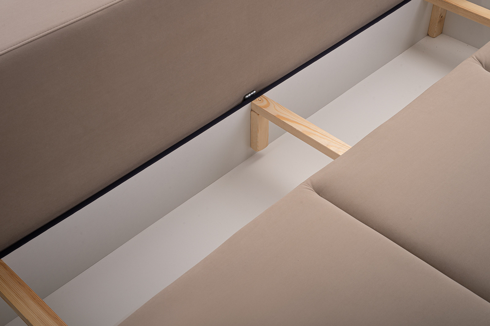 Moderní pohovka Beti s úložným prostorem. Pohodlné sezení Vám zajistí kombinace pružin falistých a bonellu s kvalitní PUR pěnou. Jednoduchým rozkladem vznikne lůžko vhodné k příležitostnému spaní. Pohovku dodáváme v několika barevných provedeních, které také naleznete v naší nabídce.