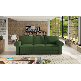 BUKIET je moderně navržená třímístná rozkládací pohovka. Nábytek je čalouněný látkou, jejíž barvy lze vybrat ze vzorníku barev dostupného na webových stránkách. Stylová pohovka je kus nábytku vybavený automatickou rozkládací pomůckou, díky níž ji bude možné bez větších problémů rychle přeměnit na lůžko. Pohovka BUKIET je volně stojící kus nábytku, a proto je její opěradlo také čalouněné - takové řešení umožňuje umístit pohovku i do centrální části obývacího pokoje. Nábytek s moderním designem s bočnicemi je umístěn na chromových nožkách, které mu dodávají zajímavý charakter. Model BUKIET je umístěn na dřevěném rámu a sedák a opěrák jsou zakončeny vlnitými pružinami, které pomáhají udržovat správnou pružnost, takže ani přes časté používání nedochází k nevzhledným deformacím. Pohovka BUKIET s klasickým tvarem zaujme na první pohled svými mírně zaoblenými boky a polštáři umístěnými na opěradle, které zajistí pohodlí a komfort i při mnohahodinovém sezení.