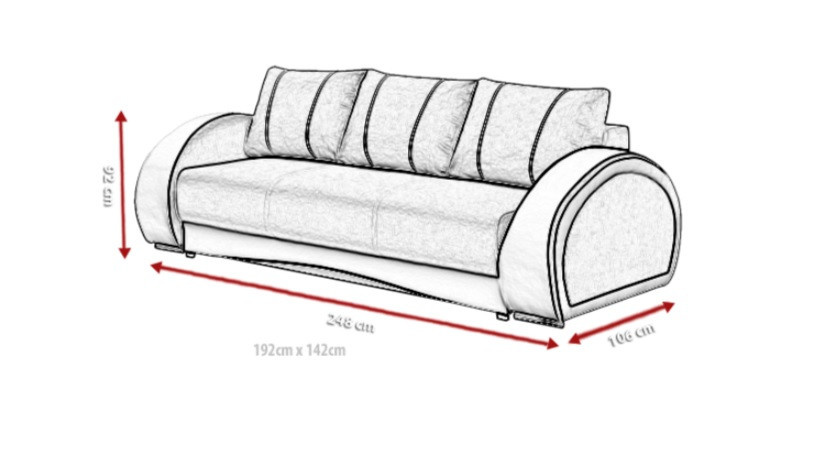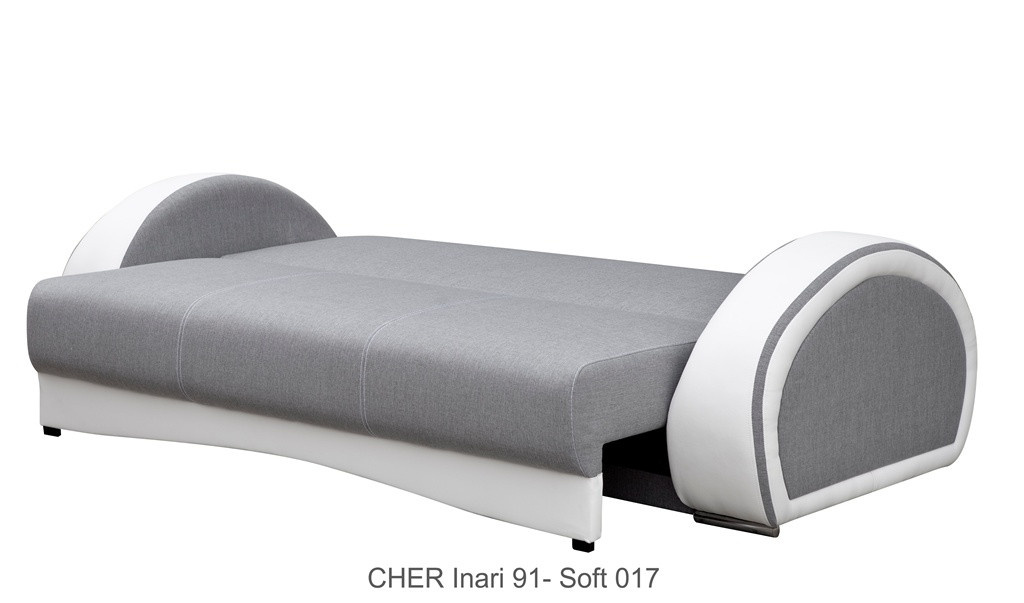Pohovka CHER je dokončena v modernistickém designu, takže kolem ní nikdo neprojde lhostejně. Pohovka se zaoblenými boky může být čalouněna látkou nebo ekokůží, které jsou k dispozici v široké škále barev ve vzorníku barev. Třímístná pohovka je vybavena nádobou na lůžkoviny a funkcí spaní, takže ji lze rozložit. V základní verzi pohovky jsou vložky vyrobeny z bílé ekokůže. CHER je pohovka postavená na dřevěném rámu a doplněná chromovanými nohami. Rozkládání pohovky zvládnou i starší nebo mladší lidé, protože je vybavena automatickým asistenčním systémem rozkládání typu DL. Sedák pohovky je vyplněn bonelovými a vlnitými pružinami, takže si budeme jisti komfortem a pohodlím i při mnohahodinovém používání.