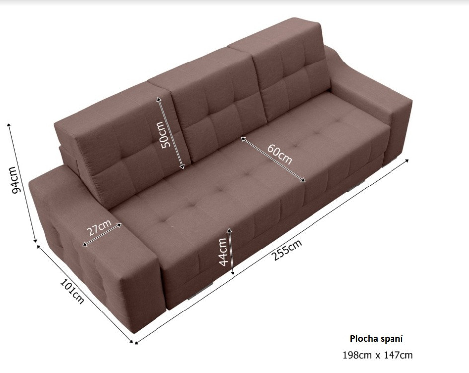 Stylová pohovka CYNITA je třímístná a je vhodní i do obývacího pokoje - můžete na ní volně odpočívat s rodinou u šálku kávy nebo čaje, sledovat televizi nebo číst knihu. Rozkládací pohovka s funkcí spaní umístěná na dřevěném rámu je vybavena moderně vypadajícími chromovanými nohami. Konstrukci nábytku tvoří dřevěný rám, který je zárukou odolnosti a stability, zatímco výplň sedáku a opěráku tvoří vlnitá pružina - nevznikají na nich nevzhledné deformace. CYNITA upoutá pozornost dekorativním prošíváním a šitím, které nikdo nepřejde lhostejně. Pohovka s bočnicemi je kromě úložného prostoru na lůžkoviny vybavena pohyblivými polštáři, které nejen doplňují estetiku pohovky, ale také zajišťují komfort a pohodlí při jejím používání. Volně stojící kus nábytku může být celý čalouněný látkou nebo ekokůží. Rozkládací pohovka najde své ideální místo v obývacím pokoji i v prostoru soukromé pracovny.