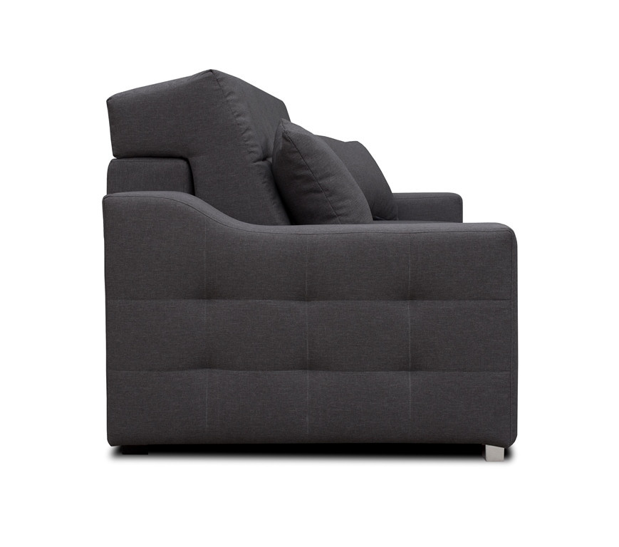 Modernistická pohovka CYPIS je masivní třímístná pohovka, která bude atraktivním a zároveň praktickým kusem nábytku do obývacího pokoje nebo obývacího pokoje. Stylová pohovka s bočnicemi je kus nábytku s funkcí spaní, který zaručuje pohodlný a bezpečný spánek. Tento kus nábytku, dokončený ve skandinávském dekoru, osloví i ty nejnáročnější uživatele - vypadá esteticky a zároveň poskytuje pohodlí a komfort i při dlouhém sezení. Rozkládací pohovka CYPIS je vybavena prostorným úložným prostorem na lůžkoviny a automatickým rozkládáním, díky níž je přeměna pohovky na lůžko rychlá a efektivní. Model CYPIS stojí na masivním dřevěném rámu a celou konstrukci podpírají chromované nohy, které nábytku dodávají moderní charakter. Výplň pohovky tvoří vlnité pružiny, které udržují odpovídající pružnost sedáku a opěráku. Součástí sady s pohovkou jsou dva dekorační polštáře. Volně stojící pohovka CYPIS potěší prošívanými boky i prošíváním viditelným na tvarovaném opěradle. Pohovka do obývacího pokoje může být čalouněná látkou nebo ekokůží v široké škále barev, ze kterých si můžete vybrat.