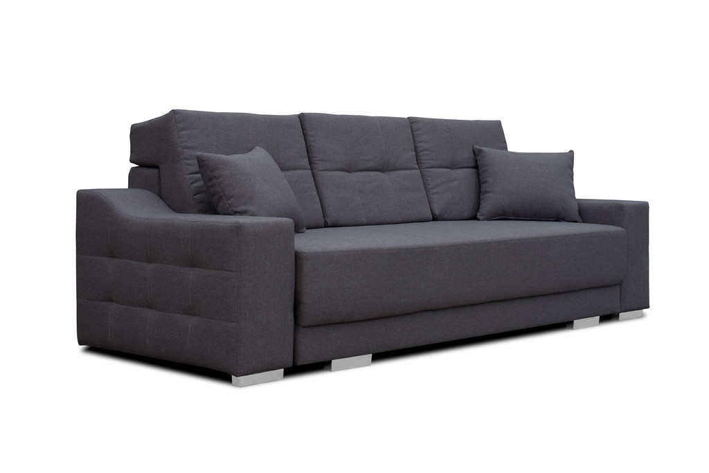 Modernistická pohovka CYPIS je masivní třímístná pohovka, která bude atraktivním a zároveň praktickým kusem nábytku do obývacího pokoje nebo obývacího pokoje. Stylová pohovka s bočnicemi je kus nábytku s funkcí spaní, který zaručuje pohodlný a bezpečný spánek. Tento kus nábytku, dokončený ve skandinávském dekoru, osloví i ty nejnáročnější uživatele - vypadá esteticky a zároveň poskytuje pohodlí a komfort i při dlouhém sezení. Rozkládací pohovka CYPIS je vybavena prostorným úložným prostorem na lůžkoviny a automatickým rozkládáním, díky níž je přeměna pohovky na lůžko rychlá a efektivní. Model CYPIS stojí na masivním dřevěném rámu a celou konstrukci podpírají chromované nohy, které nábytku dodávají moderní charakter. Výplň pohovky tvoří vlnité pružiny, které udržují odpovídající pružnost sedáku a opěráku. Součástí sady s pohovkou jsou dva dekorační polštáře. Volně stojící pohovka CYPIS potěší prošívanými boky i prošíváním viditelným na tvarovaném opěradle. Pohovka do obývacího pokoje může být čalouněná látkou nebo ekokůží v široké škále barev, ze kterých si můžete vybrat.