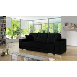 Modernistická pohovka CYPIS je masivní třímístná pohovka, která bude atraktivním a zároveň praktickým kusem nábytku do obývacího pokoje nebo obývacího pokoje. Stylová pohovka s bočnicemi je kus nábytku s funkcí spaní, který zaručuje pohodlný a bezpečný spánek. Tento kus nábytku, dokončený ve skandinávském dekoru, osloví i ty nejnáročnější uživatele - vypadá esteticky a zároveň poskytuje pohodlí a komfort i při dlouhém sezení. Rozkládací pohovka CYPIS je vybavena prostorným úložným prostorem na lůžkoviny a automatickým rozkládáním, díky níž je přeměna pohovky na lůžko rychlá a efektivní. Model CYPIS stojí na masivním dřevěném rámu a celou konstrukci podpírají chromované nohy, které nábytku dodávají moderní charakter. Výplň pohovky tvoří vlnité pružiny, které udržují odpovídající pružnost sedáku a opěráku. Součástí sady s pohovkou jsou dva dekorační polštáře. Volně stojící pohovka CYPIS potěší prošívanými boky i prošíváním viditelným na tvarovaném opěradle. Pohovka do obývacího pokoje může být čalouněná látkou nebo ekokůží v široké škále barev, ze kterých si můžete vybrat.