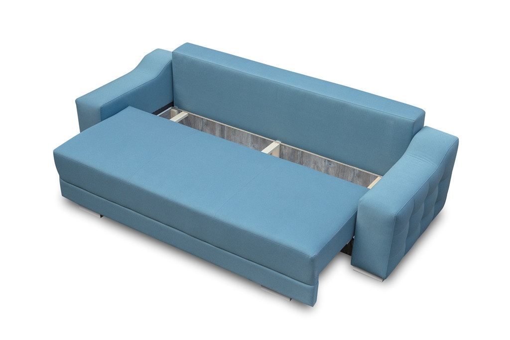 Modernistická pohovka CYPIS je masivní třímístná pohovka, která bude atraktivním a zároveň praktickým kusem nábytku do obývacího pokoje nebo obývacího pokoje. Stylová pohovka s bočnicemi je kus nábytku s funkcí spaní, který zaručuje pohodlný a bezpečný spánek. Tento kus nábytku, dokončený ve skandinávském dekoru, osloví i ty nejnáročnější uživatele - vypadá esteticky a zároveň poskytuje pohodlí a komfort i při dlouhém sezení. Rozkládací pohovka CYPIS je vybavena prostorným úložným prostorem na lůžkoviny a automatickým rozkládáním, díky níž je přeměna pohovky na lůžko rychlá a efektivní. Model CYPIS stojí na masivním dřevěném rámu a celou konstrukci podpírají chromované nohy, které nábytku dodávají moderní charakter. Výplň pohovky tvoří vlnité pružiny, které udržují odpovídající pružnost sedáku a opěráku. Součástí sady s pohovkou jsou dva dekorační polštáře. Volně stojící pohovka CYPIS potěší prošívanými boky i prošíváním viditelným na tvarovaném opěradle. Pohovka do obývacího pokoje může být čalouněná látkou nebo ekokůží v široké škále barev, ze kterých si můžete vybrat.