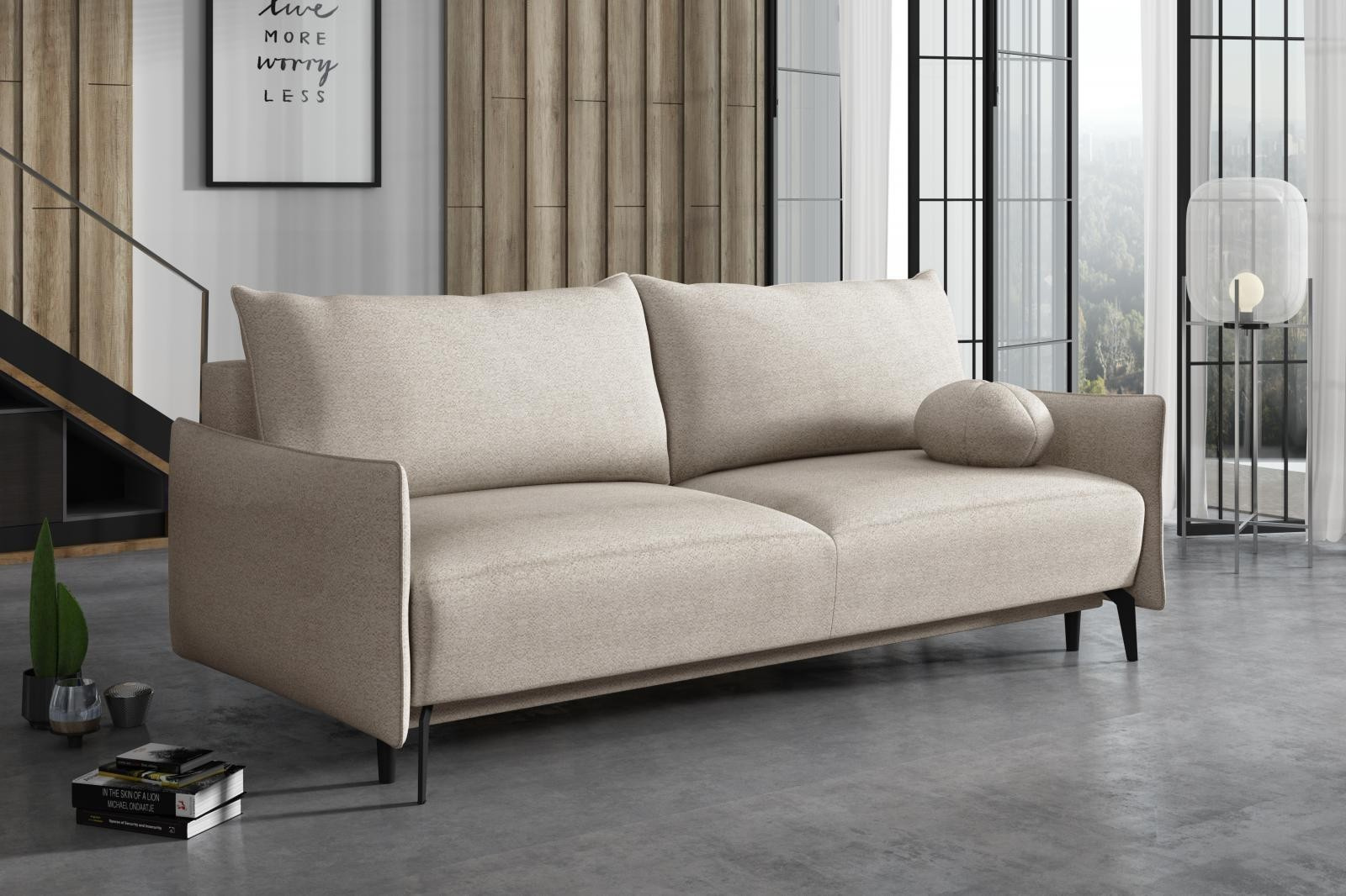 Pohovka Damira je velmi pohodlná polštářová a rozkládací pohovka. Výplň sedáku tvoří vlnité pružiny s PUR pěnou. Pohodlí při sezení mimo jiné, poskytuje dostatek polštářů, které si můžete přizpůsobit tak, aby se Vám pohodlně sedělo a odpočívalo. Jednoduchým rozložením pomocí automatu získáte dostatečně velké lůžko pro příležitostné přespání Vaší návštěvy. Samozřejmostí je také nezbytný úložný prostor, který využijete např. na lůžkoviny. Pohovka je celočalouněná, takže ji můžete umístit také do prostoru. Výborně se hodí do obývacího pokoje, do pracovny či pokoje pro hosty. Vyobrazené doplňky a dekorace nejsou v ceně.