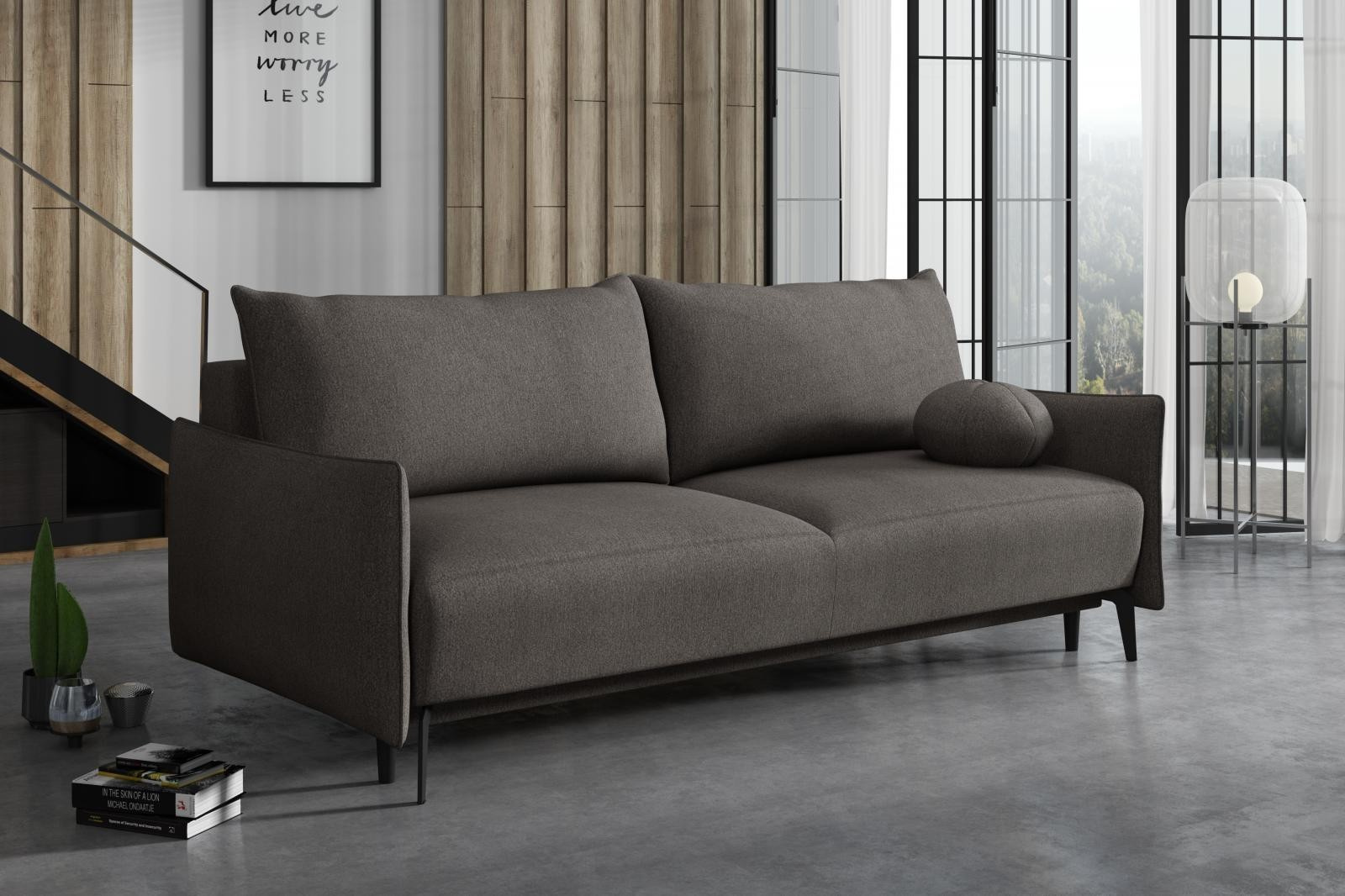 Pohovka Damira je velmi pohodlná polštářová a rozkládací pohovka. Výplň sedáku tvoří vlnité pružiny s PUR pěnou. Pohodlí při sezení mimo jiné, poskytuje dostatek polštářů, které si můžete přizpůsobit tak, aby se Vám pohodlně sedělo a odpočívalo. Jednoduchým rozložením pomocí automatu získáte dostatečně velké lůžko pro příležitostné přespání Vaší návštěvy. Samozřejmostí je také nezbytný úložný prostor, který využijete např. na lůžkoviny. Pohovka je celočalouněná, takže ji můžete umístit také do prostoru. Výborně se hodí do obývacího pokoje, do pracovny či pokoje pro hosty. Vyobrazené doplňky a dekorace nejsou v ceně.