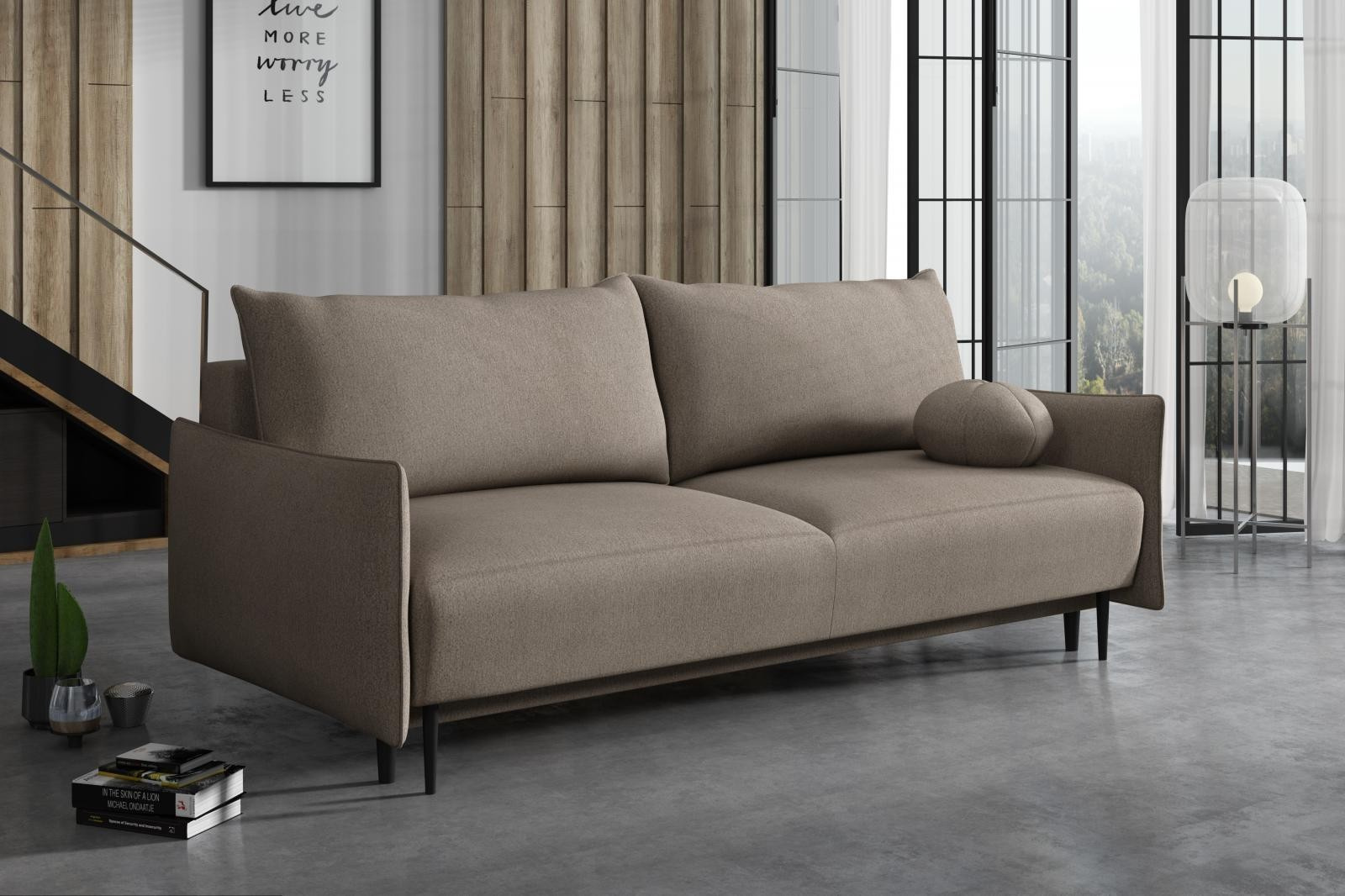 Pohovka Damira je velmi pohodlná polštářová a rozkládací pohovka. Výplň sedáku tvoří vlnité pružiny s PUR pěnou. Pohodlí při sezení mimo jiné, poskytuje dostatek polštářů, které si můžete přizpůsobit tak, aby se Vám pohodlně sedělo a odpočívalo. Jednoduchým rozložením pomocí automatu získáte dostatečně velké lůžko pro příležitostné přespání Vaší návštěvy. Samozřejmostí je také nezbytný úložný prostor, který využijete např. na lůžkoviny. Pohovka je celočalouněná, takže ji můžete umístit také do prostoru. Výborně se hodí do obývacího pokoje, do pracovny či pokoje pro hosty. Vyobrazené doplňky a dekorace nejsou v ceně.