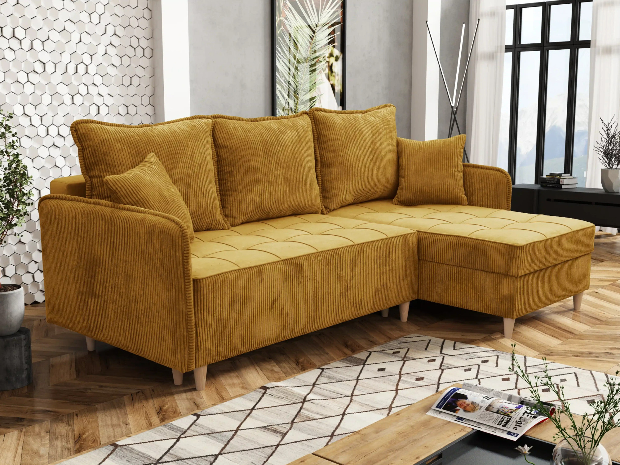 - Elegantní nohy: Dodávají pohovce moderní a vzdušný vzhled.