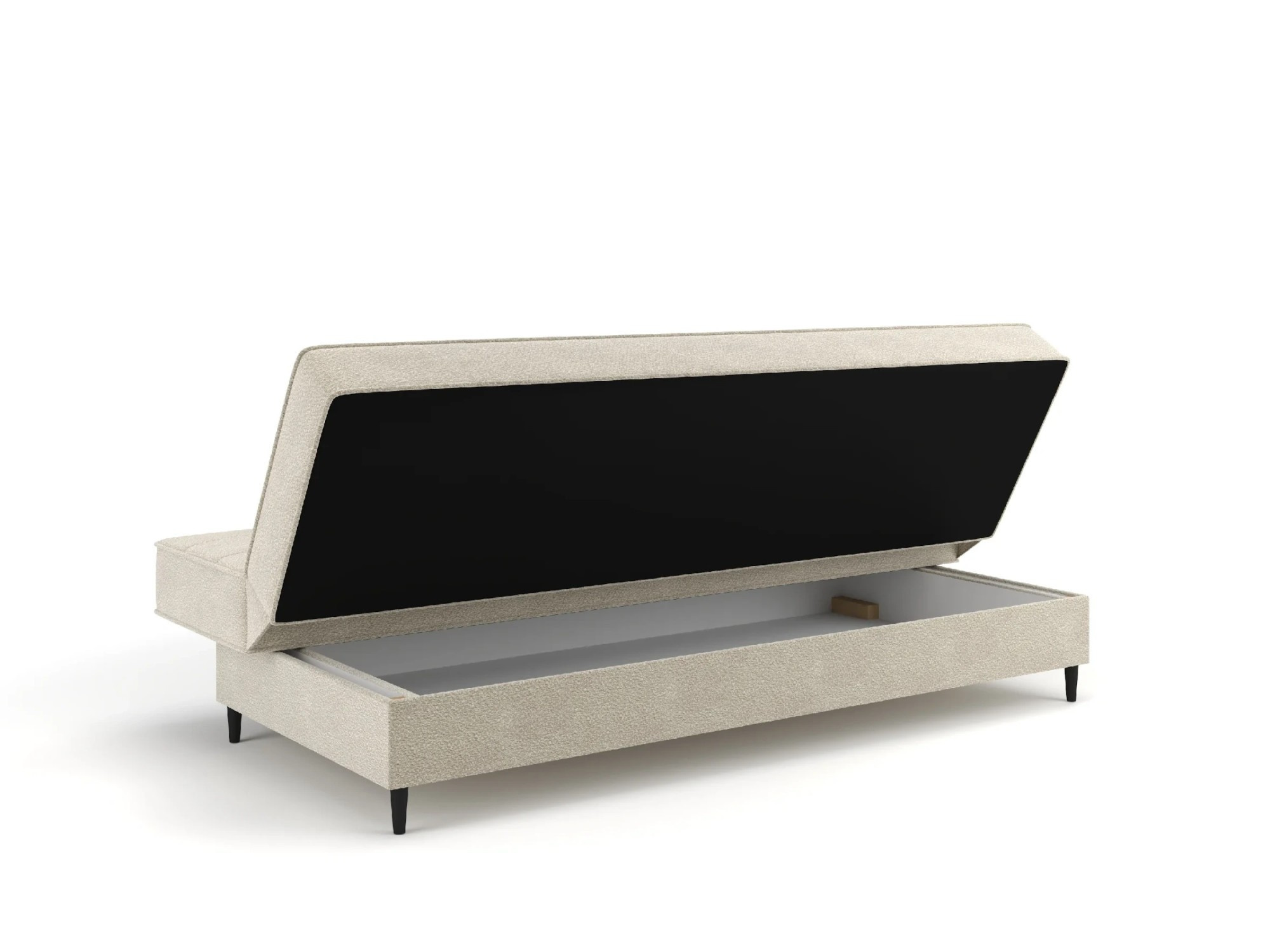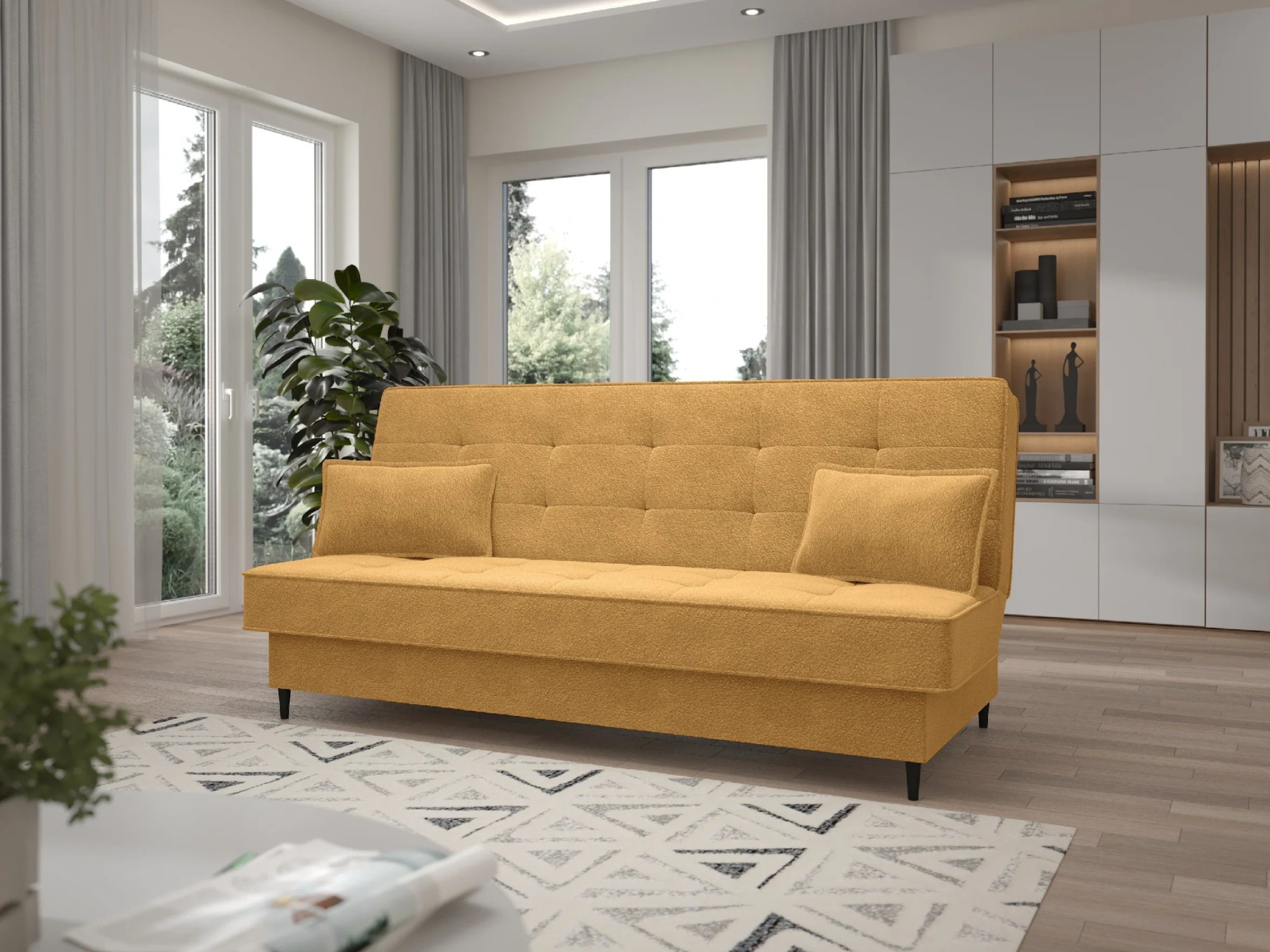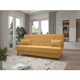 Pohovka FIORA – spojení funkčnosti, měkkosti a moderního stylu Pohovka FIORA je ideální volbou pro ty, kteří hledají kombinaci pohodlí, estetiky a funkčnosti. Díky jednoduchému, ale stylovému provedení a módní tkanině bouclé, tento nábytek přináší do interiéru nádech moderní elegance a domácího tepla. Model je vybaven praktickou funkcí spaní, která umožňuje během několika sekund přeměnit pohovku na pohodlnou postel. Rozkládání probíhá pomocí osvědčeného mechanismu klick-klack, který funguje lehce a spolehlivě – ideální pro každodenní použití nebo přijímání hostů. Na celé ploše na spaní byly použity bonellové pružiny, které zajišťují vysoký komfort odpočinku a dlouhou životnost pohovky. To ideální řešení pro osoby, které si cení pohodlí jak při sezení, tak při spánku. Pohovka FIORA byla potažena měkkou, na dotek příjemnou látkou typu bouclé, která nejenže vypadá stylově, ale také dodává interiéru útulný charakter. Tlumená barevnost a geometrické prošívání opěradla zdůrazňují moderní formu nábytku, a přiložené polštáře typu jasiek zvyšují komfort používání. Vlastnosti produktu: mechanismus klik-klak umožňuje bleskové rozložení pohovky do funkce spaní, zajišťuje jednoduchost používání i při každodenním použití, celá plocha na spaní vybavená bonellovými pružinami zajišťuje pohodlný spánek a odolnost proti deformacím, praktický úložný prostor na ložní prádlo skrytý pod sedákem je ideálním místem pro uložení dek, polštářů a dalších textilií, měkká tkanina bouclé obklopuje nábytek jemnou strukturou, zdůrazňuje jeho útulný a módní vzhled, prošívané opěradlo a sedák dodávají eleganci a přinášejí jemný dekorativní akcent, štíhlé černé kovové nožky dodávají pohovce vizuální lehkost a zdůrazňují moderní charakter tvaru. Rozměry pohovky: plocha na spaní: 190 × 120 cm, šířka: 198 cm, hloubka: 90 cm, výška: 95 cm, výška sedáku: 46 cm, hloubka sedáku: 55 cm, výška opěradla: 55 cm, výška nožek: 13 cm. *Všechny rozměry jsou uváděny s tolerancí +/- 3 cm