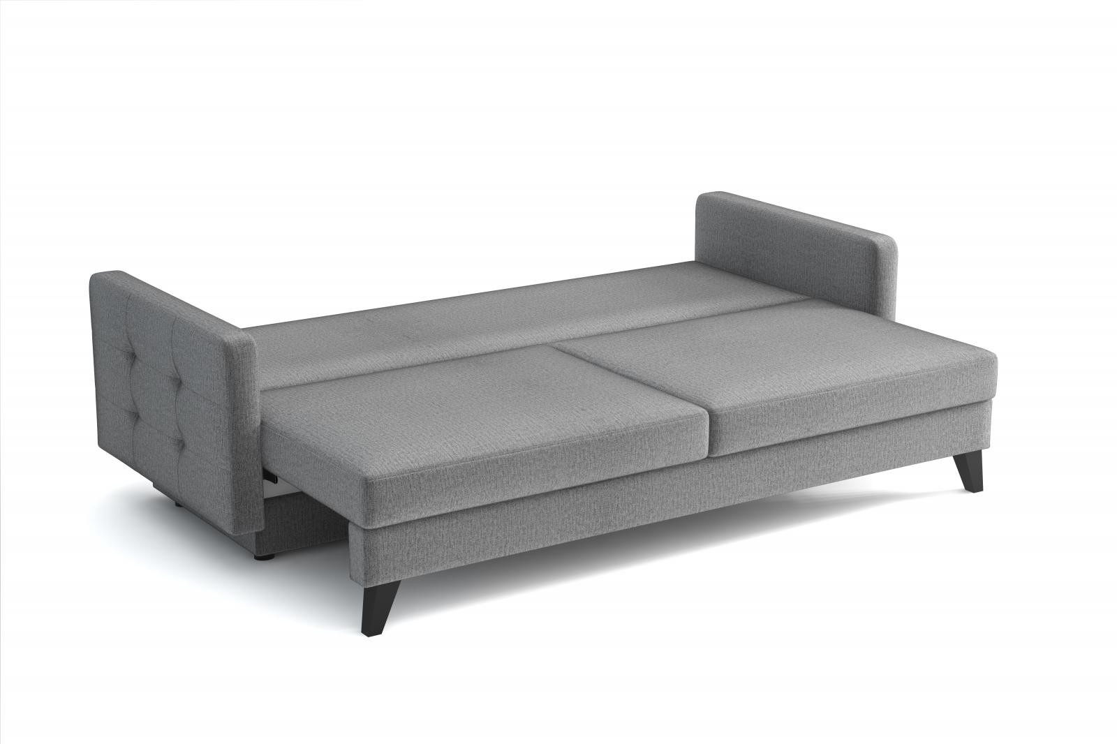Pohovka Fjord je krásným elegantním kouskem s nádechem RETRO designu a výborně zapadne do každého interiéru. Retro design podtrhují zešikmené dřevěné nohy a látkové knoflíky na opěrce. Pohovka je rozkládací a samozřejmostí je i nepostradatelný úložný prostor. Jednoduchým rozložením pomocí automatu vznikne dostatečně prostorné lůžko k občasnému přespání Vaší návštěvy. Výplň sedáku tvoří vlnité pružiny v kombinaci s pružinami bonell a kvalitní PUR pěnou. Pohovka je celočalouněná, takže ji můžete umístit i do prostoru. Výborně se hodí do obývacího pokoje, do pracovny či pokoje pro hosty. Pohovku nabízíme v několika trendy barvách. Fotografie pohovky v rozkladu jsou pouze ilustrační. Správný barevný odstín je na úvodní fotografii.