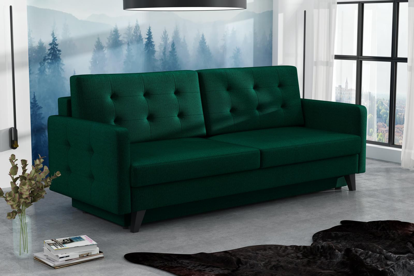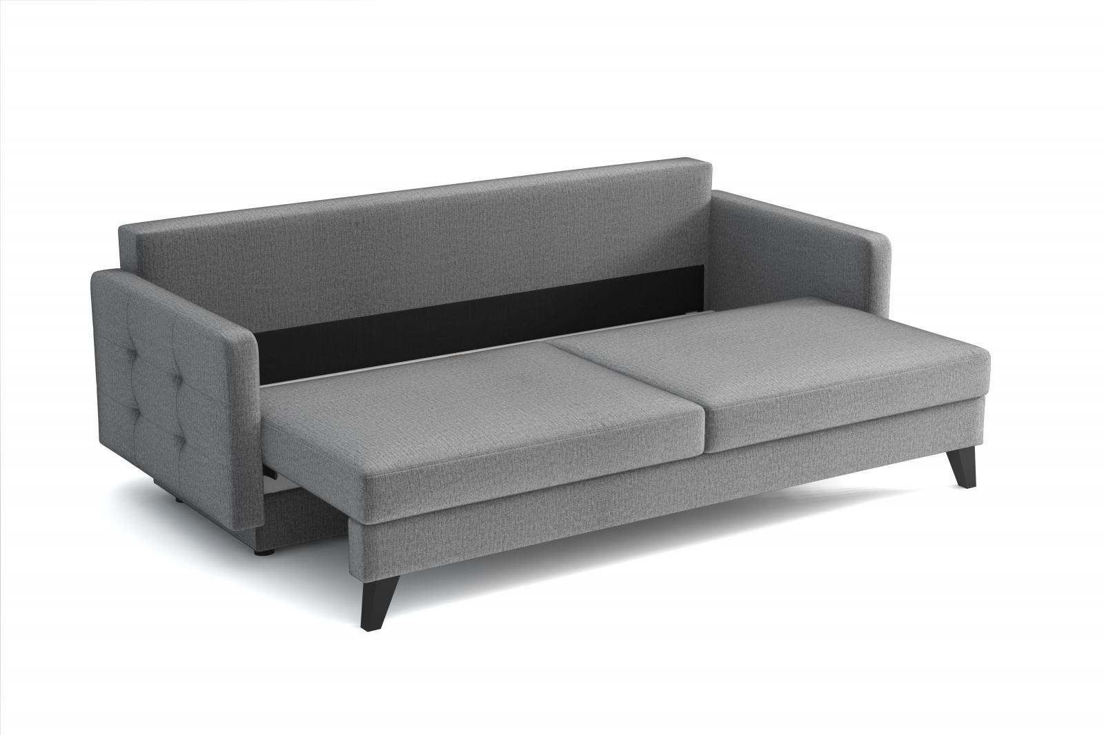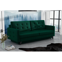 Pohovka Fjord je krásným elegantním kouskem s nádechem RETRO designu a výborně zapadne do každého interiéru. Retro design podtrhují zešikmené dřevěné nohy a látkové knoflíky na opěrce. Pohovka je rozkládací a samozřejmostí je i nepostradatelný úložný prostor. Jednoduchým rozložením pomocí automatu vznikne dostatečně prostorné lůžko k občasnému přespání Vaší návštěvy. Výplň sedáku tvoří vlnité pružiny v kombinaci s pružinami bonell a kvalitní PUR pěnou. Pohovka je celočalouněná, takže ji můžete umístit i do prostoru. Výborně se hodí do obývacího pokoje, do pracovny či pokoje pro hosty. Pohovku nabízíme v několika trendy barvách. Fotografie pohovky v rozkladu jsou pouze ilustrační. Správný barevný odstín je na úvodní fotografii.