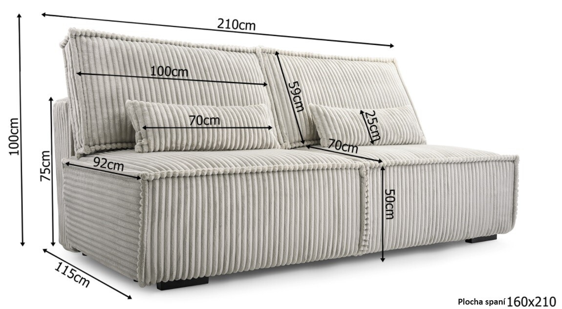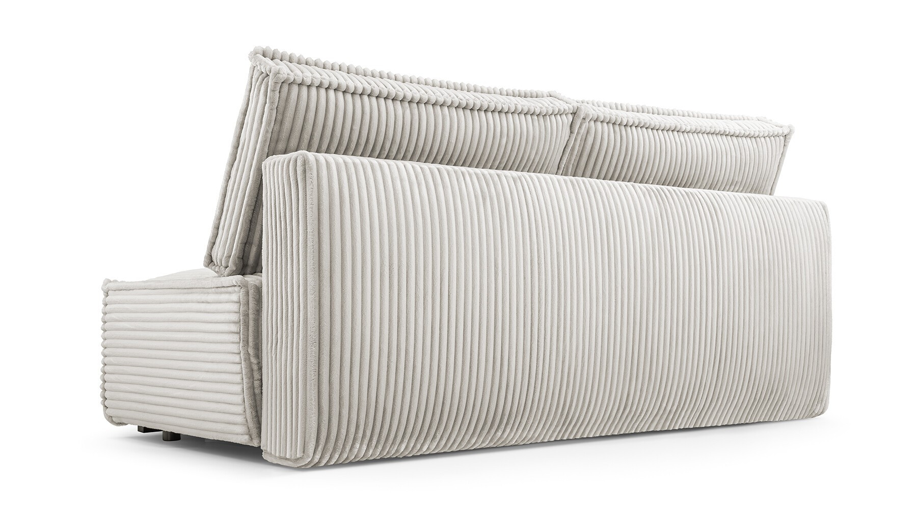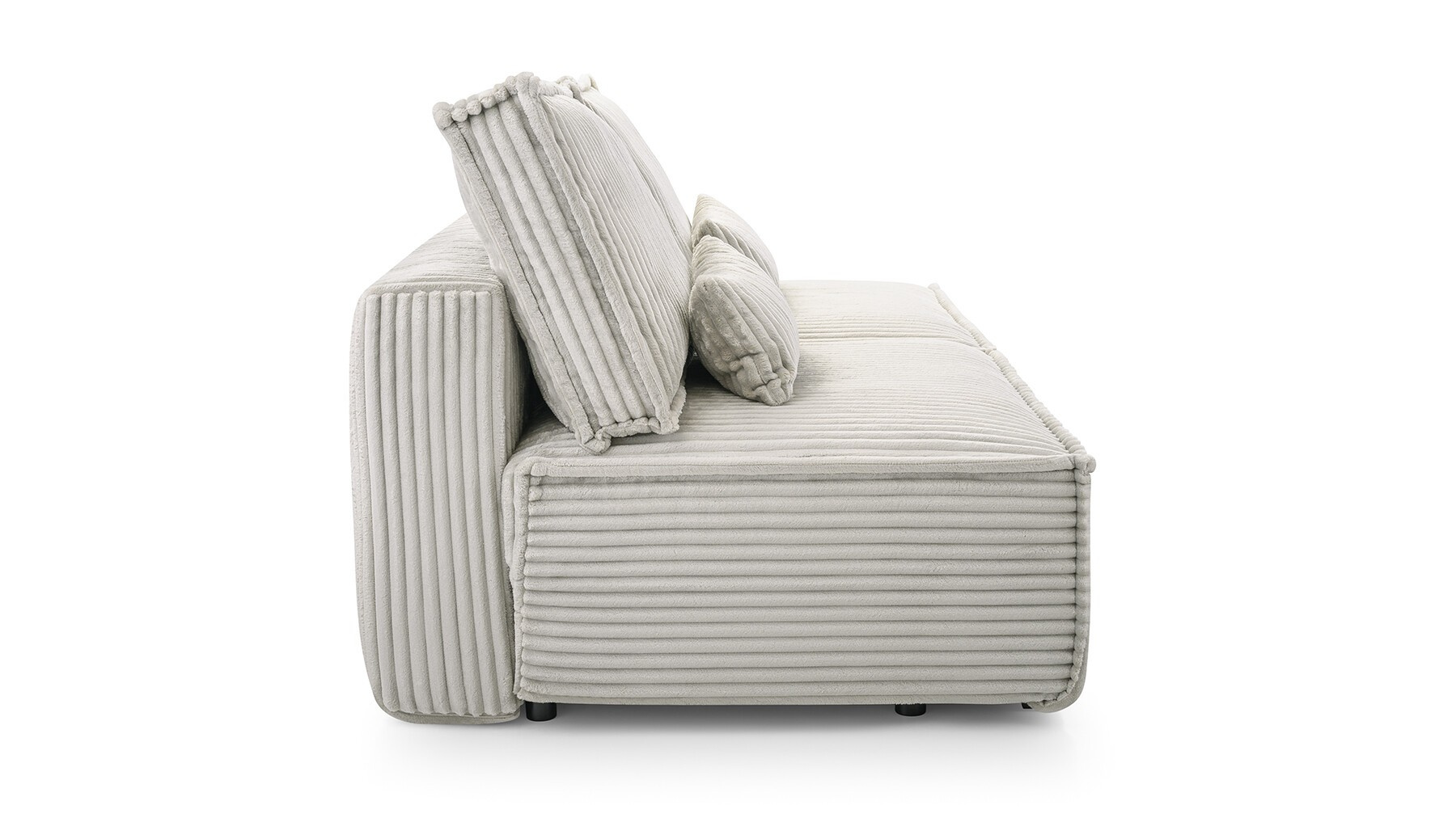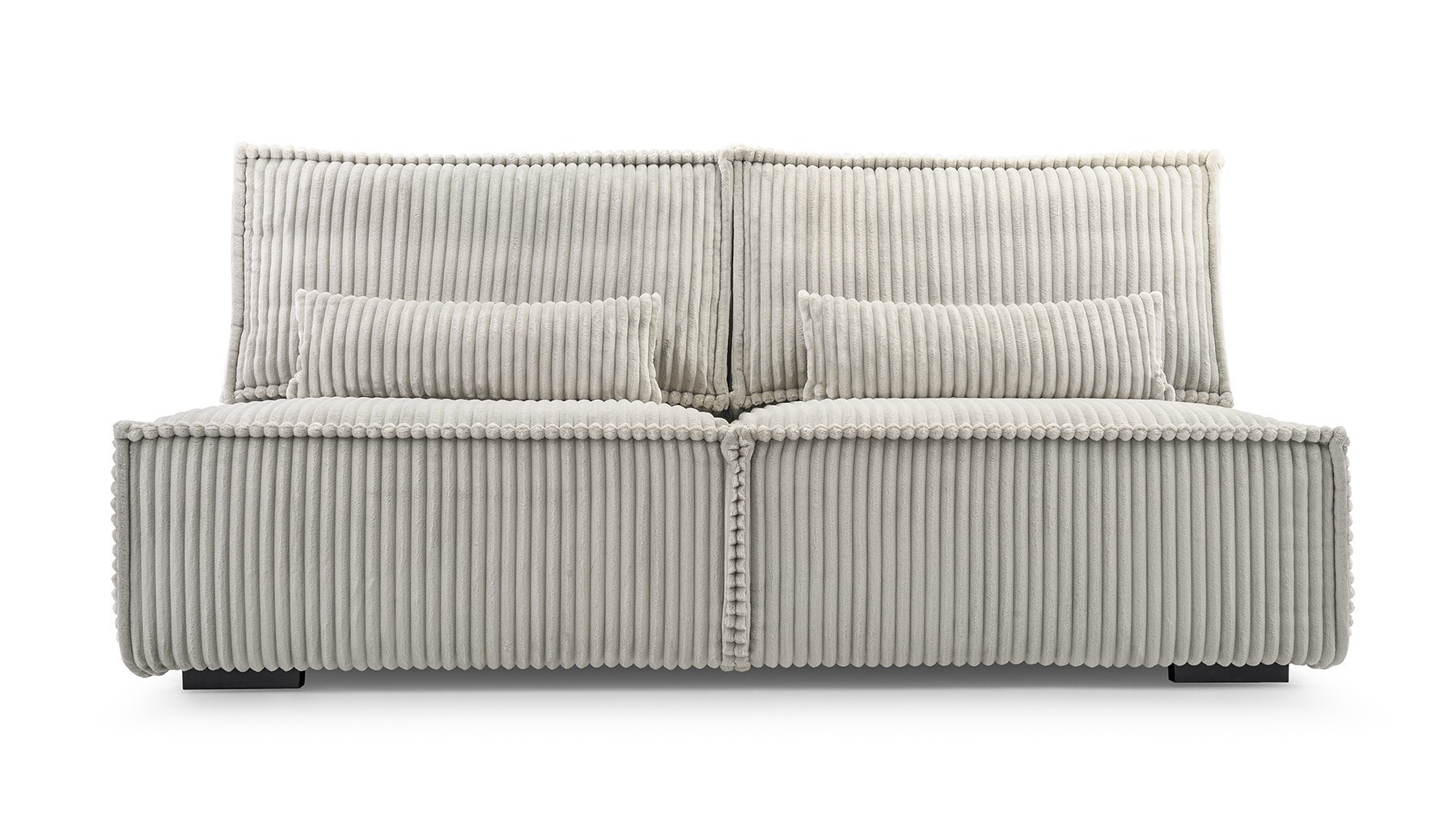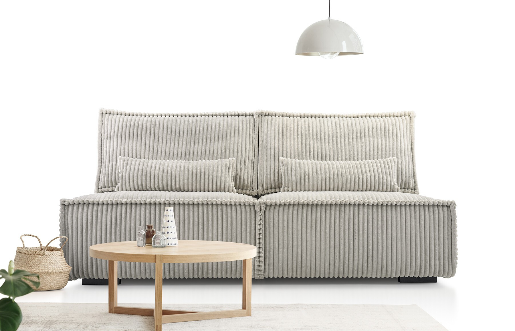 Díky svému kompaktnímu tvaru a absenci bočnic je pohovka ideální do malých obývacích pokojů a zároveň poskytuje prostor k sezení pro tři osoby.