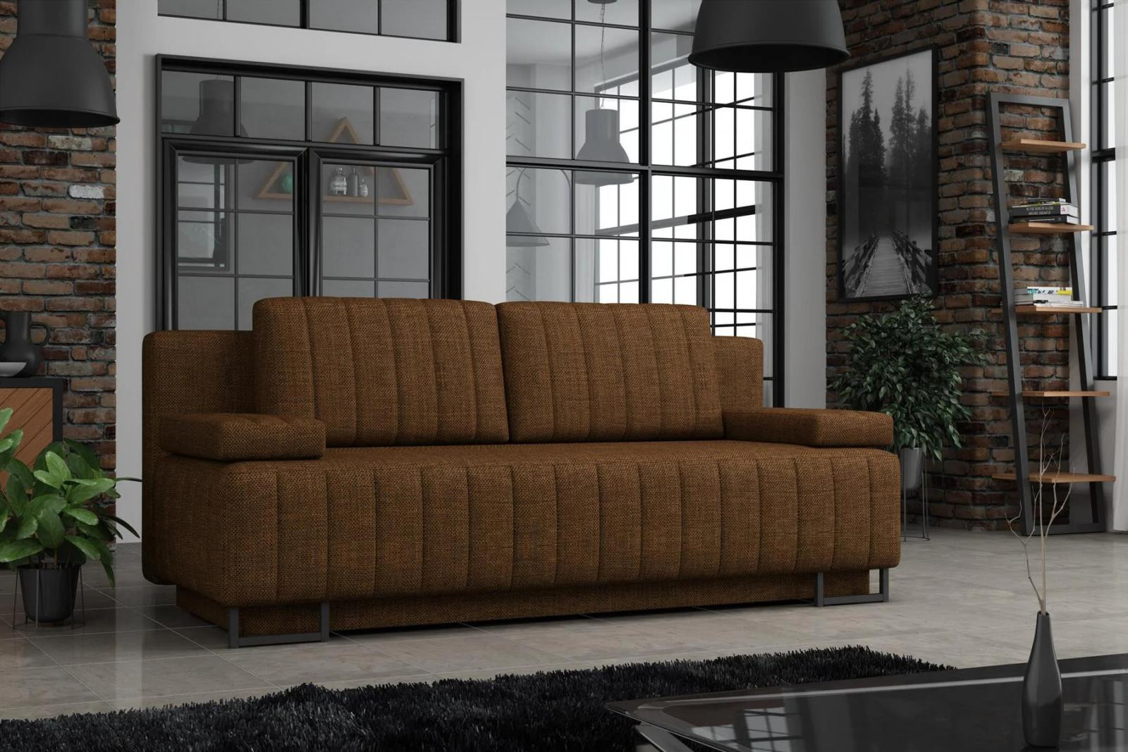 Gina je nadčasová pohovka s nádechem velmi oblíbeného retro designu. Výborně doplní jakýkoliv interiér, kde je pohodlí prioritou. Pohodlí při sezení zajišťují pružiny typu bonell v kombinaci s kvalitní PUR pěnou. Praktickou stránkou pohovky je možnost rozložení. Jednoduše, pomocí automatu, ji rozložíte na dostatčně velké lůžko k příležitostnému přespání návštěvy. Pohovka má také nezbytný úložný prostor, který využijete např.na lůžkoviny. Pohovka je potažena kvalitní látkou a nabízíme ji v několika trendy odstínech. Vlivem nastavení monitorů, nebo displejů telefonů, se zobrazení barev na fotograii může od skutečnosti lišit. Vyobrazené dopňky a dekorace nejsou v ceně.