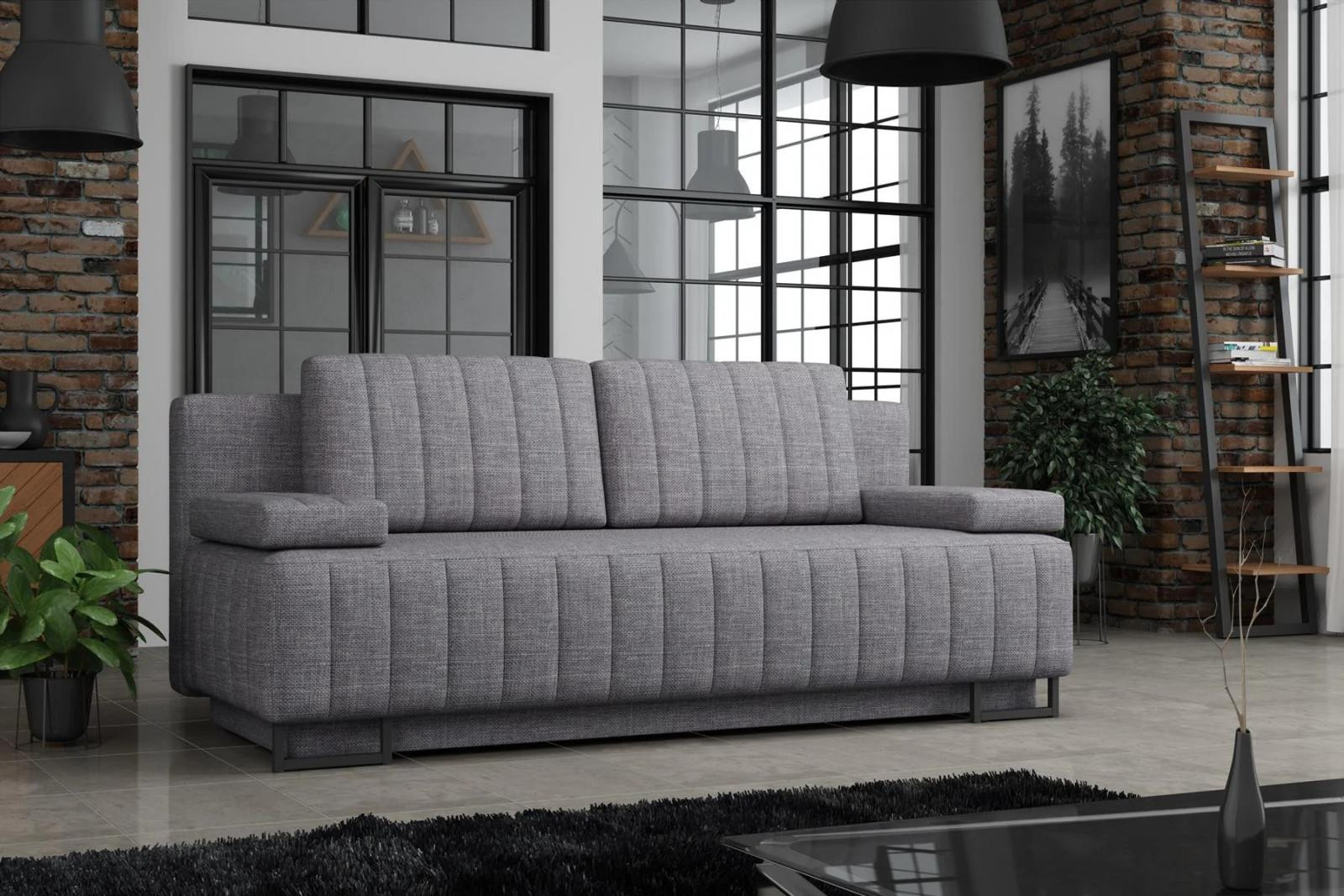 Gina je nadčasová pohovka s nádechem velmi oblíbeného retro designu. Výborně doplní jakýkoliv interiér, kde je pohodlí prioritou. Pohodlí při sezení zajišťují pružiny typu bonell v kombinaci s kvalitní PUR pěnou. Praktickou stránkou pohovky je možnost rozložení. Jednoduše, pomocí automatu, ji rozložíte na dostatčně velké lůžko k příležitostnému přespání návštěvy. Pohovka má také nezbytný úložný prostor, který využijete např.na lůžkoviny. Pohovka je potažena kvalitní látkou a nabízíme ji v několika trendy odstínech. Vlivem nastavení monitorů, nebo displejů telefonů, se zobrazení barev na fotograii může od skutečnosti lišit. Vyobrazené dopňky a dekorace nejsou v ceně.