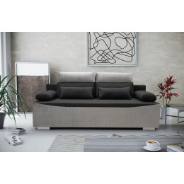 Pohovka GRACJAN má moderní design, který si najde své místo v moderním obývacím pokoji. Pohovka se bude líbit i těm nejnáročnějším uživatelům, protože zaručuje komfort a pohodlí při odpočinku a je estetická - nikdo ji nemine lhostejně. Dvoubarevná pohovka zaujme na první pohled dekorativně prošívanou základnou a horním lemováním polštářů. Celý kus nábytku je navíc doplněn chromovanými nožkami, díky nimž pohovka vypadá neobyčejně originálně. Pohovka je celá čalouněná látkou, jejíž barvy si můžete vybrat ve výběru barev. Dvoumístná pohovka GRACJAN bez bočnic je vybavena dvěma polštáři sloužícími jako područky a dvěma polštáři umístěnými na opěradle, které zaručují pohodlí i při dlouhém sezení. Za zmínku stojí, že pohovka ukrývá prostorný kontejner na lůžkoviny, do kterého se snadno vejdou přikrývky, polštáře a další předměty, které potřebujeme mít po ruce během nočního odpočinku. Rozkládací pohovka s moderní povrchovou úpravou vám poskytne nejen jedinečný odpočinek, ale v obývacím pokoji bude působit i esteticky.