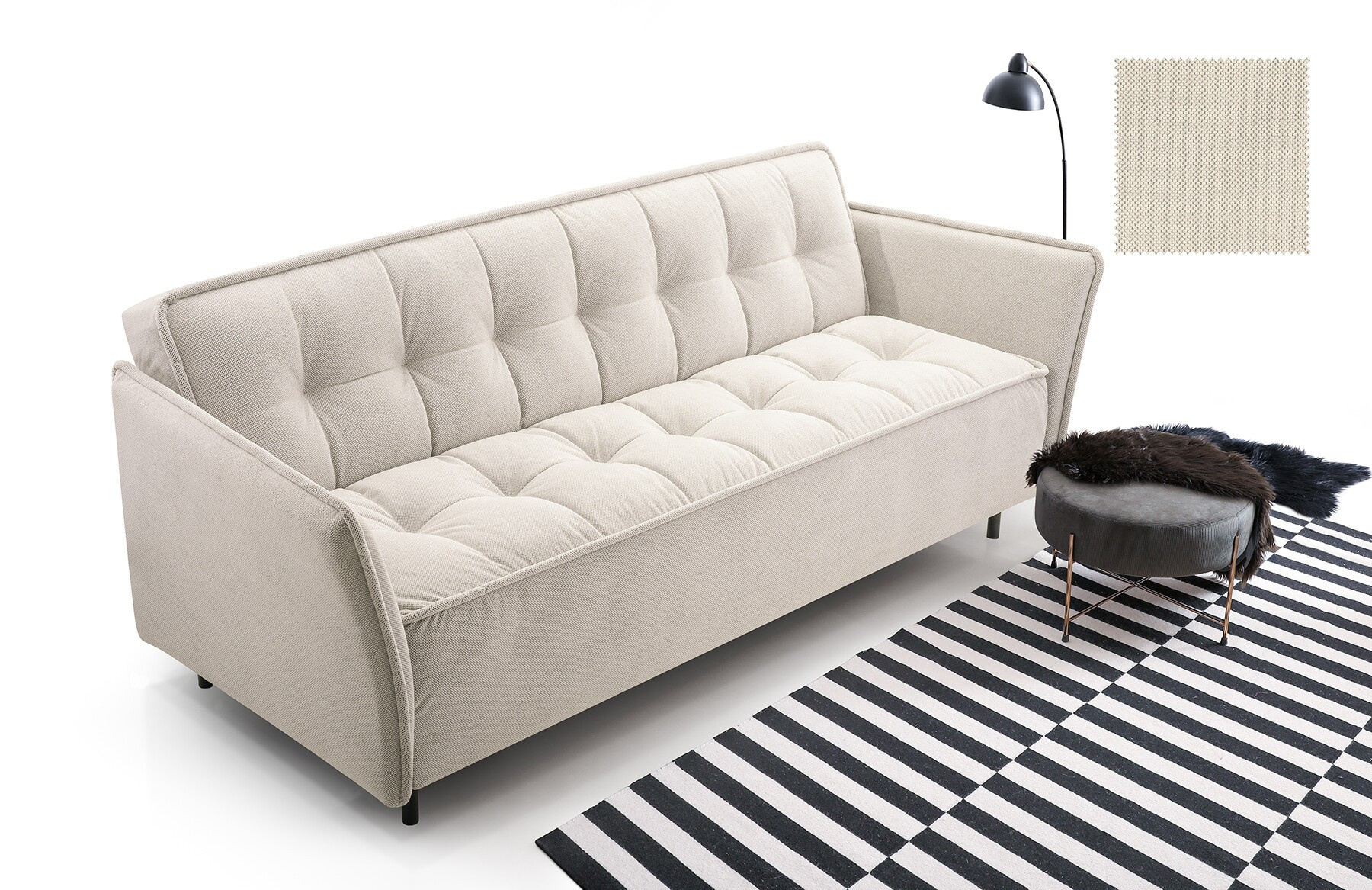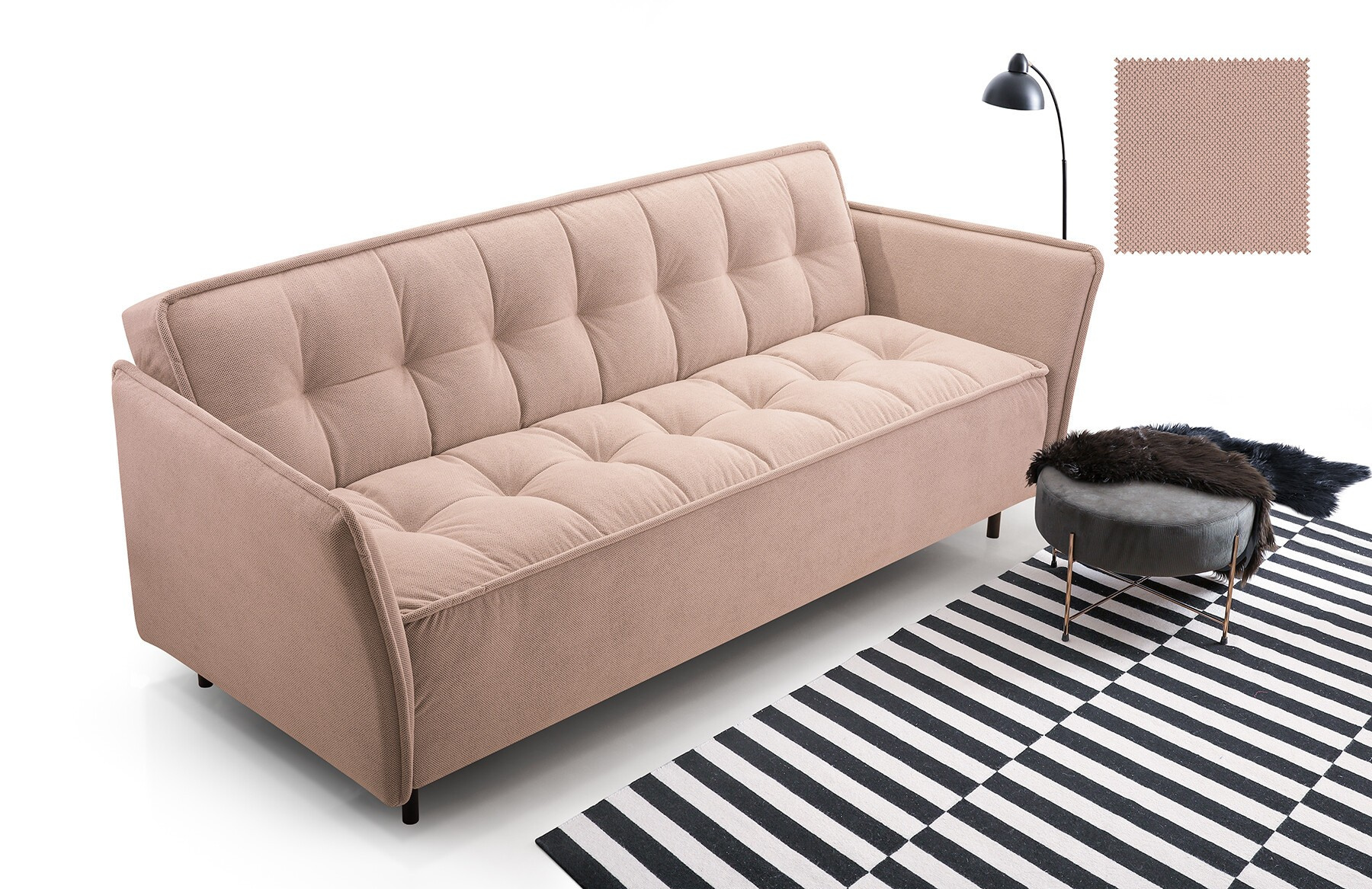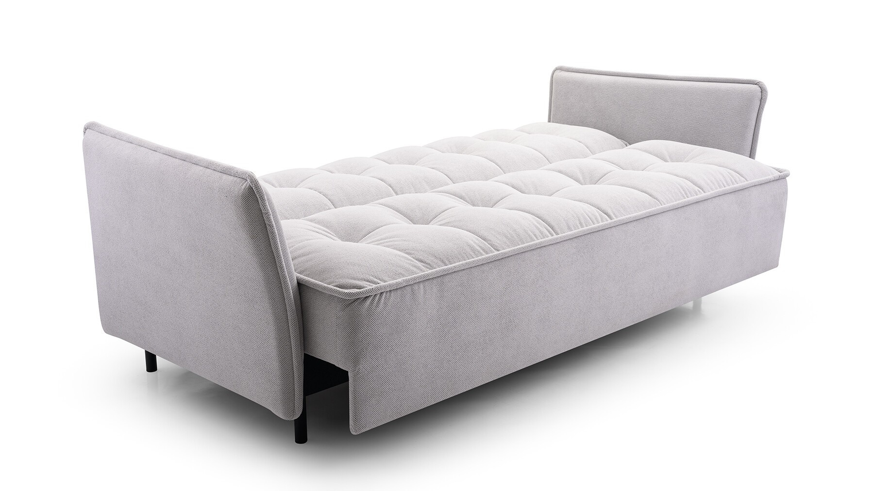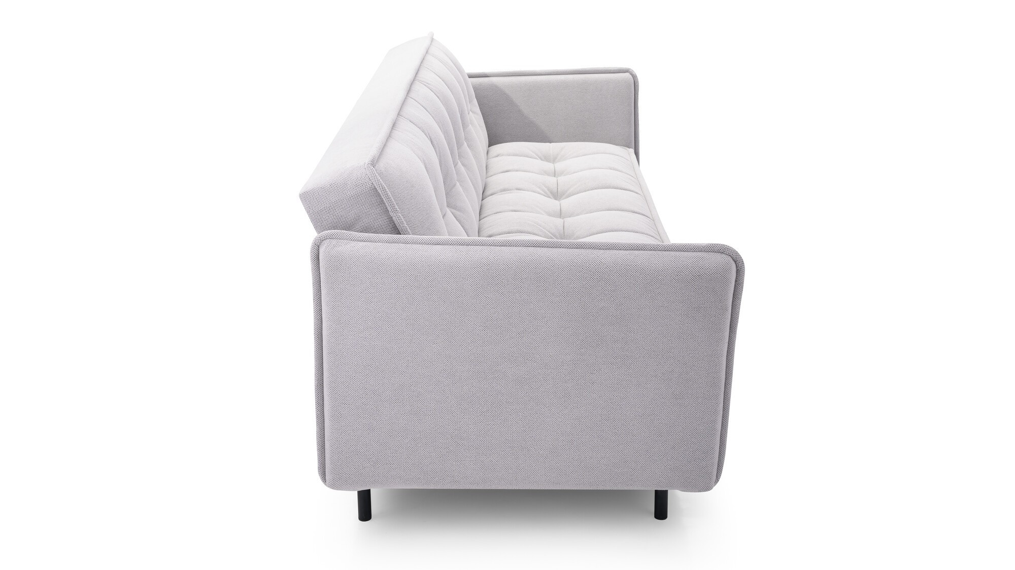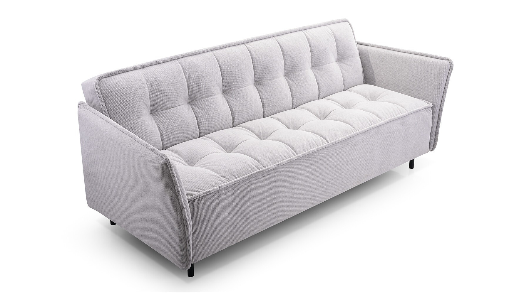 Pohovka JARIS je moderní kousek, který se bude skvěle vyjímat v obývacím pokoji zařízeném v moderním stylu. Pohovka je čalouněná látkou, která je k dispozici v široké škále barev, z nichž si můžete vybrat. Zadní část pohovky je rovněž čalouněná - pohovka je volně stojící kus nábytku. Model JARIS s bočnicemi má mimořádně estetický a moderní vzhled, takže ho nikdo nepřejde lhostejně. Pohovka je vybavena funkcí spaní a prostorným úložným prostorem na lůžkoviny, který nám pomůže udržet v pokoji pořádek. Kovové černé nožky, podtrhují výjimečně originální charakter nábytku. Pohovka, je vyplněna vlnitou pružinou a pěnou T-35 - materiály, které zaručují správnou pevnost sedáku; nedeformuje se a zároveň poskytuje pohodlné sezení. Takto uspořádaná pohovka bude v industriálním prostoru vypadat dokonale.