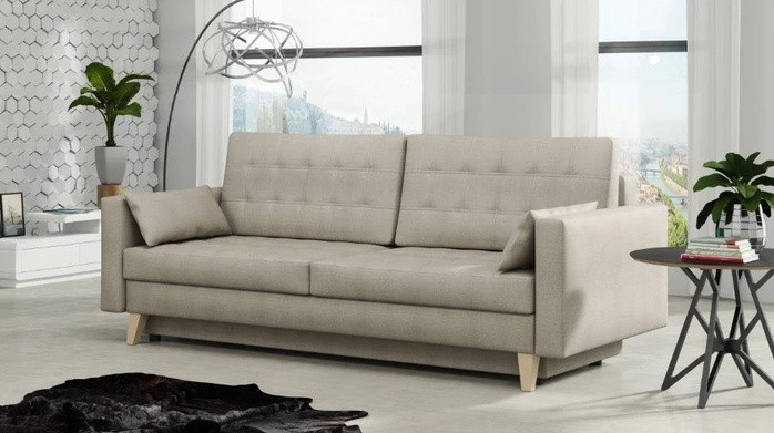 Pohovka Kelly je krásná a elegantní pohovka, která výborně zapadne do každého interiéru. Pohovka je velmi pohodlná a praktická. Praktickou stránkou pohovky je možnost rozložení - jednoduchým rozložením pomocí automatu vznikne dostatečně prostorné lůžko občasnému přespání Vaší návštěvy a samozřejmostí je také nepostradatelný úložný prostor. Pohodlí při sezení zajišťuje výpň sedáku z vlnitých pružin v kombinaci s pružinami bonell a kvalitní PUR pěnou. Pohovka je celočalouněná, takže ji můžete umístit i do prostoru. Výborně se hodí do obývacího pokoje, do pracovny či pokoje pro hosty. Pohovku nabízíme v několika trendy barvách. Vyobrazené dopňky a dekorace nejsou v ceně. Zobrazení barev produktu na fotograii se může nepatrně lišit od skutečnosti.