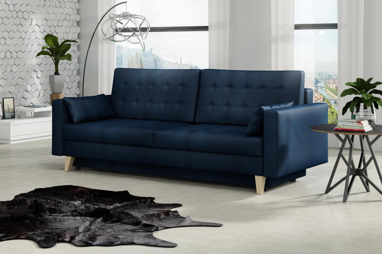 Pohovka Kelly je krásná a elegantní pohovka, která výborně zapadne do každého interiéru. Pohovka je velmi pohodlná a praktická. Praktickou stránkou pohovky je možnost rozložení - jednoduchým rozložením pomocí automatu vznikne dostatečně prostorné lůžko občasnému přespání Vaší návštěvy a samozřejmostí je také nepostradatelný úložný prostor. Pohodlí při sezení zajišťuje výpň sedáku z vlnitých pružin v kombinaci s pružinami bonell a kvalitní PUR pěnou. Pohovka je celočalouněná, takže ji můžete umístit i do prostoru. Výborně se hodí do obývacího pokoje, do pracovny či pokoje pro hosty. Pohovku nabízíme v několika trendy barvách. Vyobrazené dopňky a dekorace nejsou v ceně. Zobrazení barev produktu na fotograii se může nepatrně lišit od skutečnosti.