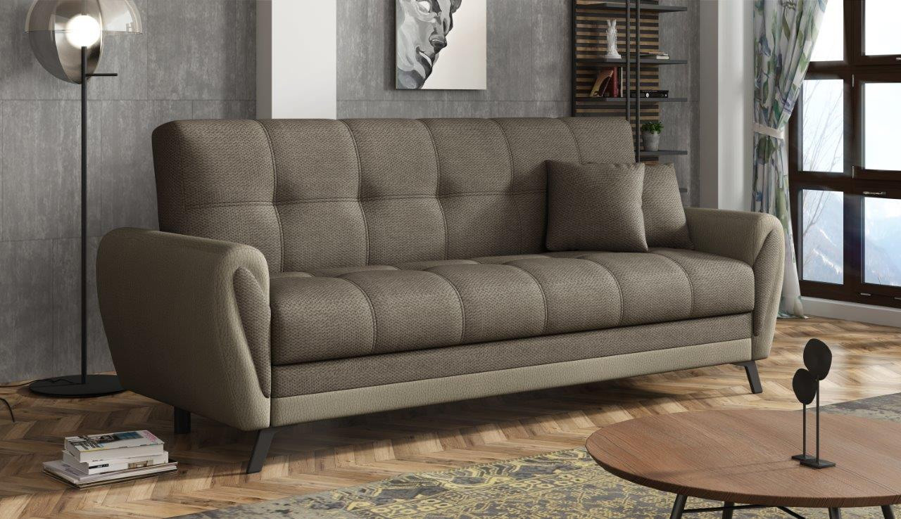 Pohovka Kira má elegantní design, který skvěle doplní jakýkoliv interiér, kde je pohodlí prioritou. Pohovka Kira je nejen velmi pohodlná, ale také praktická. Pohodlí při sezení zajišťují pružiny typu bonell v kombinaci s kvalitní PUR pěnou. Praktickou stránkou pohovky je možnost rozložení k příležitostnému přespání návštěvy a nezbytný úložný prostor, který využijete např.na lůžkoviny. Pohovku nabízíme v několika trendy odstínech. Vlivem nastavení monitorů, nebo displejů telefonů, se zobrazení barev na fotograii může od skutečnosti lišit. Vyobrazené dopňky a dekorace nejsou v ceně.