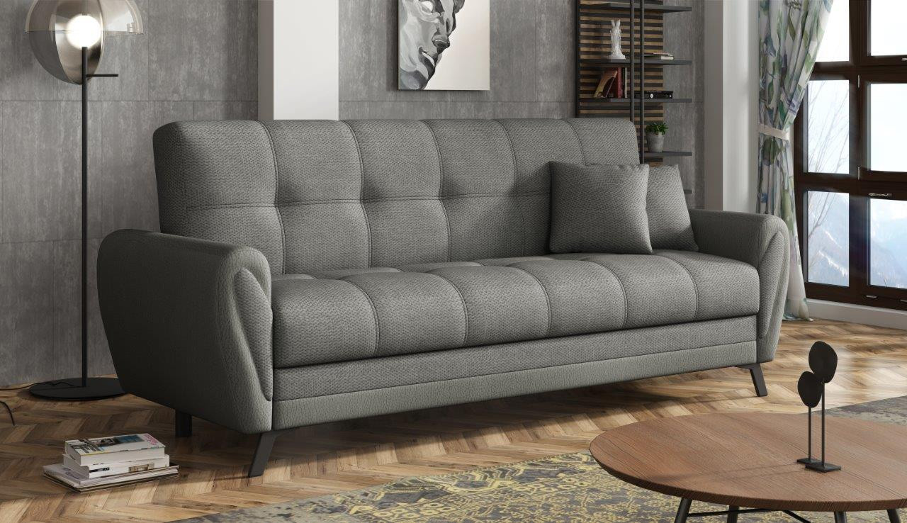Pohovka Kira má elegantní design, který skvěle doplní jakýkoliv interiér, kde je pohodlí prioritou. Pohovka Kira je nejen velmi pohodlná, ale také praktická. Pohodlí při sezení zajišťují pružiny typu bonell v kombinaci s kvalitní PUR pěnou. Praktickou stránkou pohovky je možnost rozložení k příležitostnému přespání návštěvy a nezbytný úložný prostor, který využijete např.na lůžkoviny. Pohovku nabízíme v několika trendy odstínech. Vlivem nastavení monitorů, nebo displejů telefonů, se zobrazení barev na fotograii může od skutečnosti lišit. Vyobrazené dopňky a dekorace nejsou v ceně.