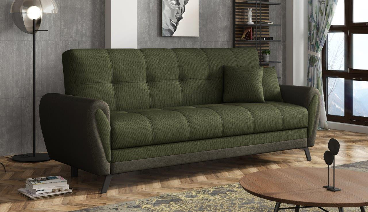 Pohovka Kira má elegantní design, který skvěle doplní jakýkoliv interiér, kde je pohodlí prioritou. Pohovka Kira je nejen velmi pohodlná, ale také praktická. Pohodlí při sezení zajišťují pružiny typu bonell v kombinaci s kvalitní PUR pěnou. Praktickou stránkou pohovky je možnost rozložení k příležitostnému přespání návštěvy a nezbytný úložný prostor, který využijete např.na lůžkoviny. Pohovku nabízíme v několika trendy odstínech. Vlivem nastavení monitorů, nebo displejů telefonů, se zobrazení barev na fotograii může od skutečnosti lišit. Vyobrazené dopňky a dekorace nejsou v ceně.