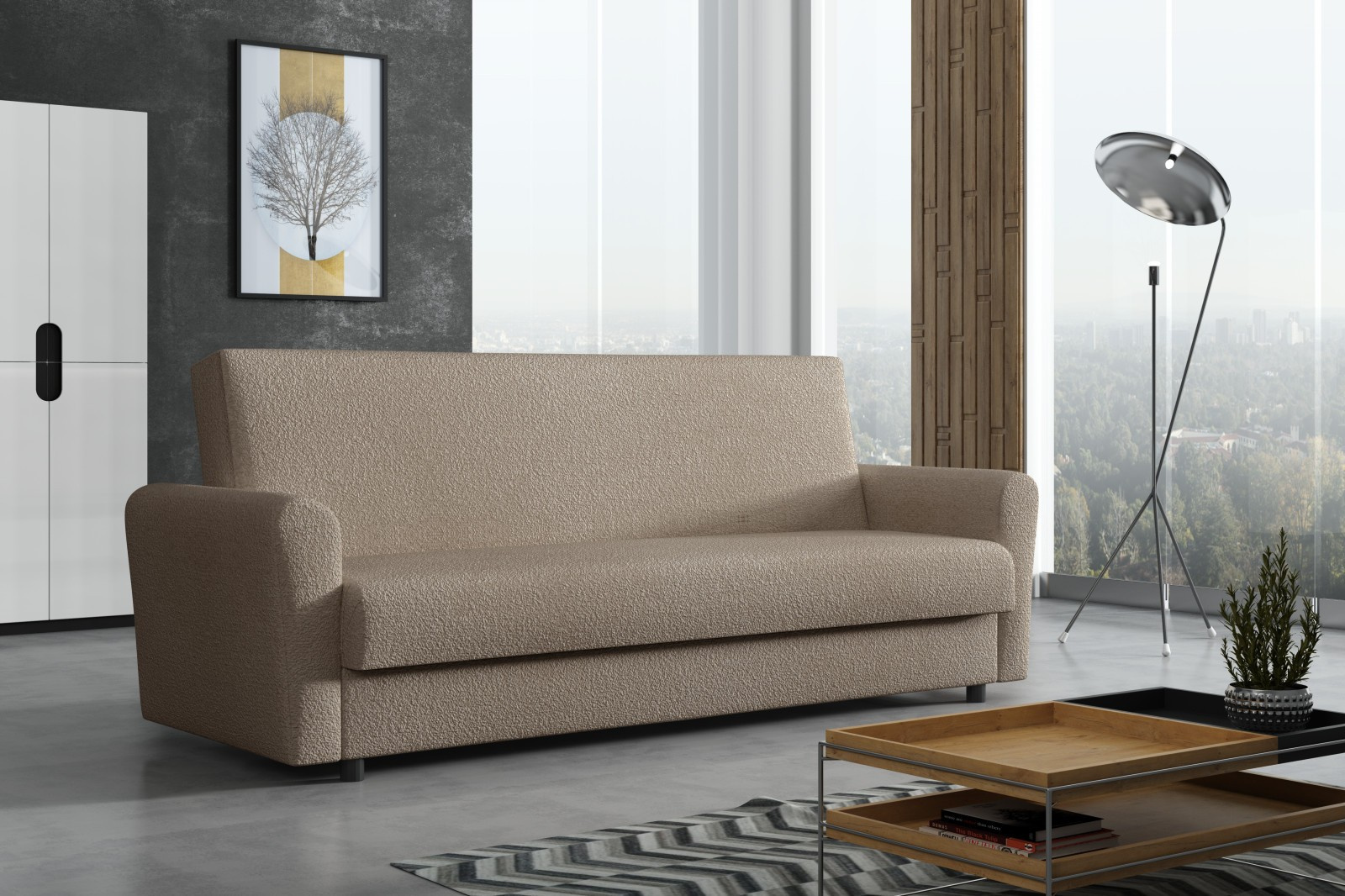 Pohovka Lana je příjemným spojením elegance, funkčnosti a atraktivní ceny. Skvěle podtrhne moderní design obývacího pokoje, ale je také vhodná např. do studentského pokoje, pracovny, nebo hostinského pokoje. Pohovka je rozkládací. Jednoduchým rozložením získáte lůžko k občasnému přespání Vaší návštěvy. Samozřejmostí je i praktický úložný prostor, který můžete využít třeba na lůžkoviny. Pohovku nabízíme v několika barevných provedeních. Vyobrazené doplňky a dekorace nejsou v ceně.