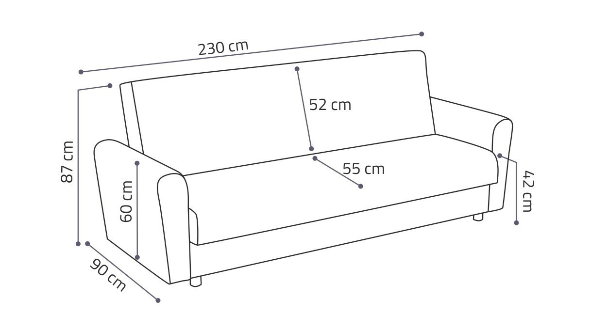 Pohovka Lana je příjemným spojením elegance, funkčnosti a atraktivní ceny. Skvěle podtrhne moderní design obývacího pokoje, ale je také vhodná např. do studentského pokoje, pracovny, nebo hostinského pokoje. Pohovka je rozkládací. Jednoduchým rozložením získáte lůžko k občasnému přespání Vaší návštěvy. Samozřejmostí je i praktický úložný prostor, který můžete využít třeba na lůžkoviny. Pohovku nabízíme v několika barevných provedeních. Vyobrazené doplňky a dekorace nejsou v ceně.