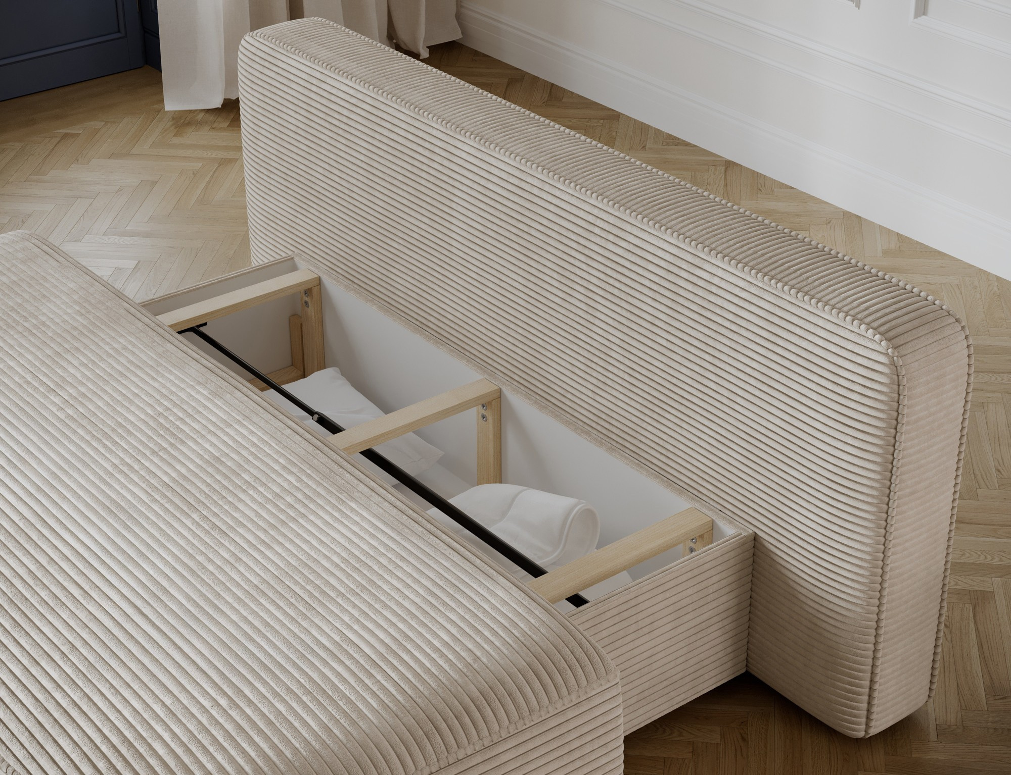 Pohovka Lilana je stylový a moderní kus nábytku o rozměrech 193x96x93 cm, který dokonale kombinuje eleganci s funkčností. Díky vlnovým pružinám typu B a polyuretanové pěně T2540 nabízí vysoký komfort sezení a dlouhotrvající odolnost při zachování elegantního vzhledu. Vybaven praktickým úložným prostorem na lůžkoviny, pomáhá udržovat váš obývací pokoj uklizený a plně čalouněná zadní část umožňuje jeho volné umístění i do středu místnosti. Černé plastové nohy dodávají designu lehkost a zdůrazňují jeho moderní charakter. Pohovka Lilana je ideální volbou pro moderní interiéry, kde záleží na pohodlí, stylu a kvalitním řemeslném zpracování.