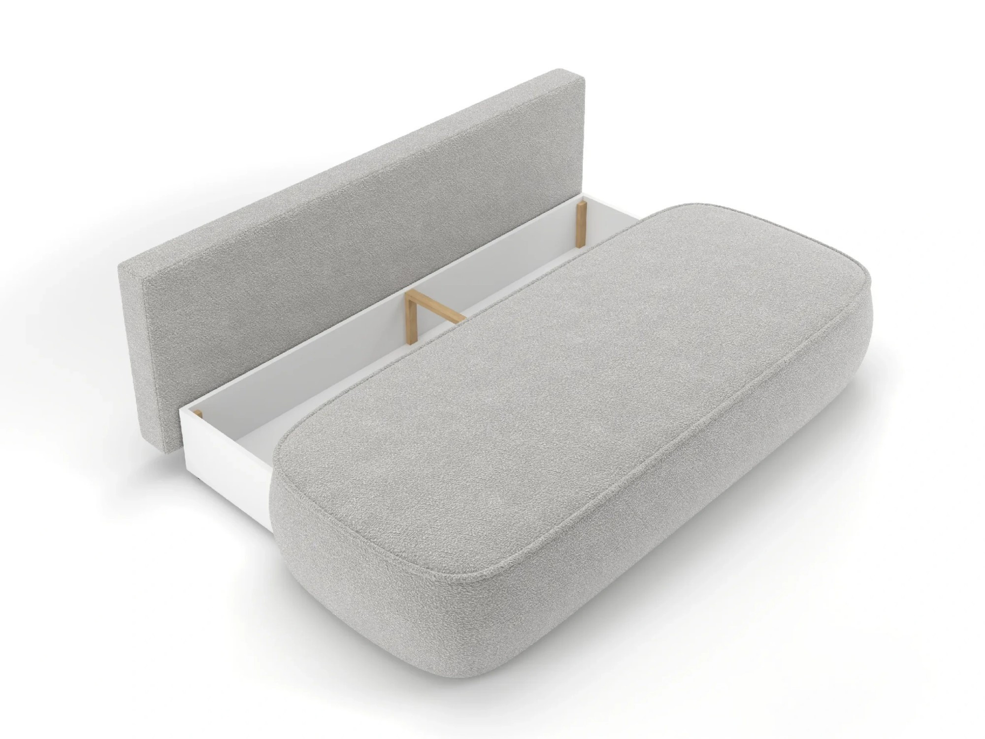Rozkládací mechanismus je jednoduchý a intuitivní, takže pohovku snadno a rychle přeměníte na pohodlné lůžko. Lůžko je dostatečně velké pro dvě osoby a poskytuje komfortní spánek. Po rozložení se pod sedáky nachází úložný prostor, který můžete využít pro uložení lůžkovin, dek nebo jiných věcí.