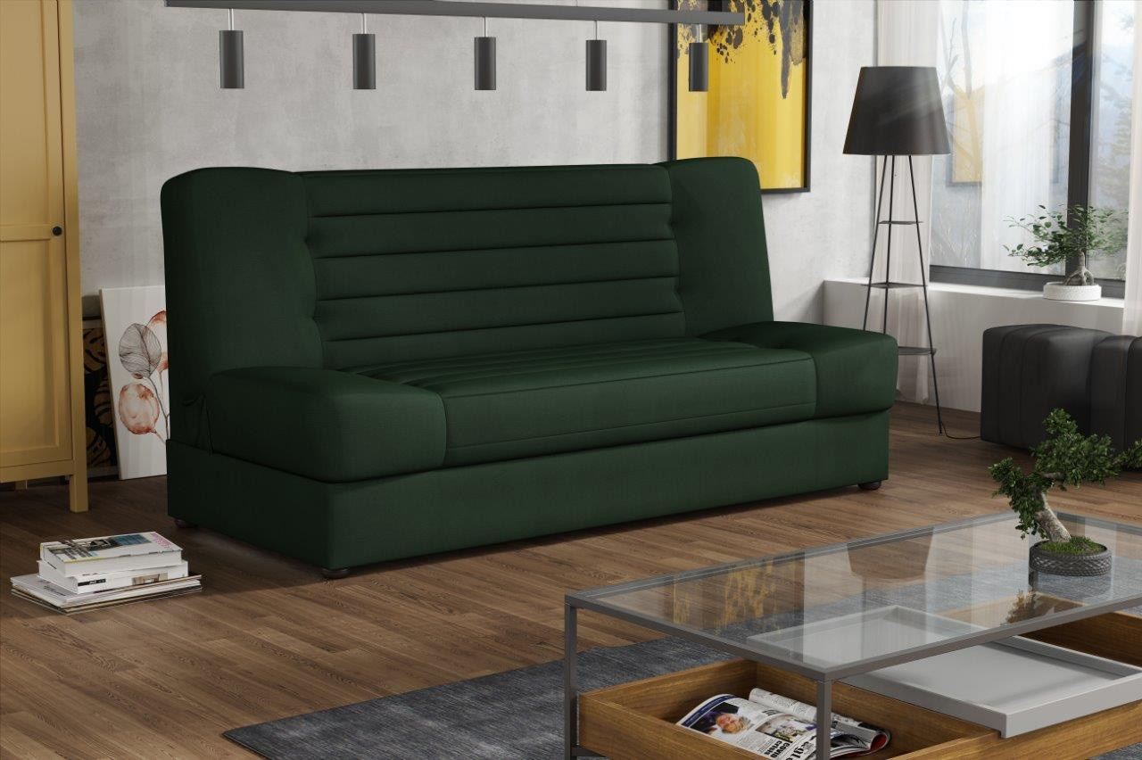 Pohovka Missy v sobě spojuje eleganci, funkčnost a příznivou cenu. Je vyrobená v jednoduchém nadčasovém designu, který se hodí do každého inferiéru. Umístit ji můžete nejen do obývacího pokoje, ale také např. do pracovny, nebo hostinského pokoje. Pohovka je rozkládací. Jednoduchým rozložením získáte lůžko k občasnému přespání Vaší návštěvy. Samozřejmostí je i praktický úložný prostor, který můžete využít třeba na lůžkoviny. Pohovku nabízíme v několika barevných provedeních. Vyobrazené doplňky a dekorace nejsou v ceně. Zobrazení barev na fotografii se může od skutečnosti lišit.