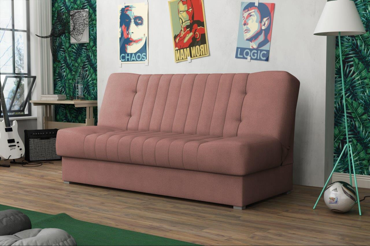 Pohovka Missy Mini v sobě spojuje eleganci, funkčnost a příznivou cenu. Je vyrobená v jednoduchém nadčasovém designu, který se hodí do každého inferiéru. Díky svým rozměrům se lehce vejde i do menší místnosti. Umístit ji můžete nejen do obývacího pokoje, ale také např. do pracovny, nebo hostinského pokoje. Pohovka je rozkládací. Jednoduchým rozložením získáte lůžko k občasnému přespání Vaší návštěvy. Samozřejmostí je i praktický úložný prostor, který můžete využít třeba na lůžkoviny. Pohovku nabízíme v několika barevných provedeních. Vyobrazené doplňky a dekorace nejsou v ceně. Zobrazení barev na fotografii se může od skutečnosti lišit.