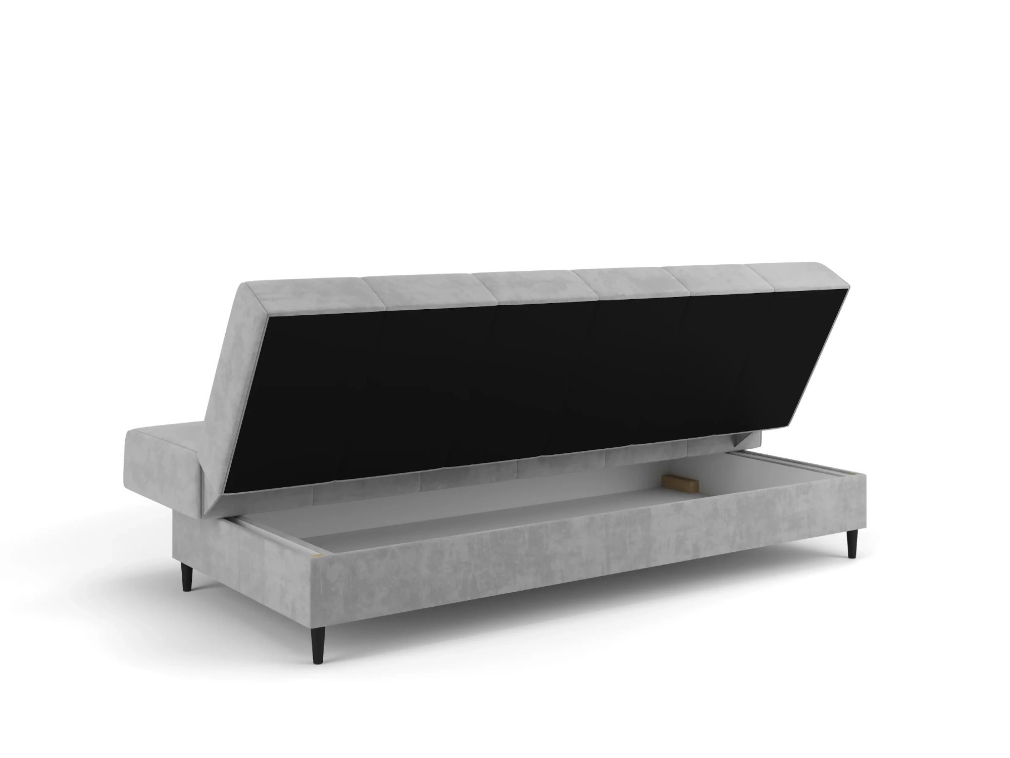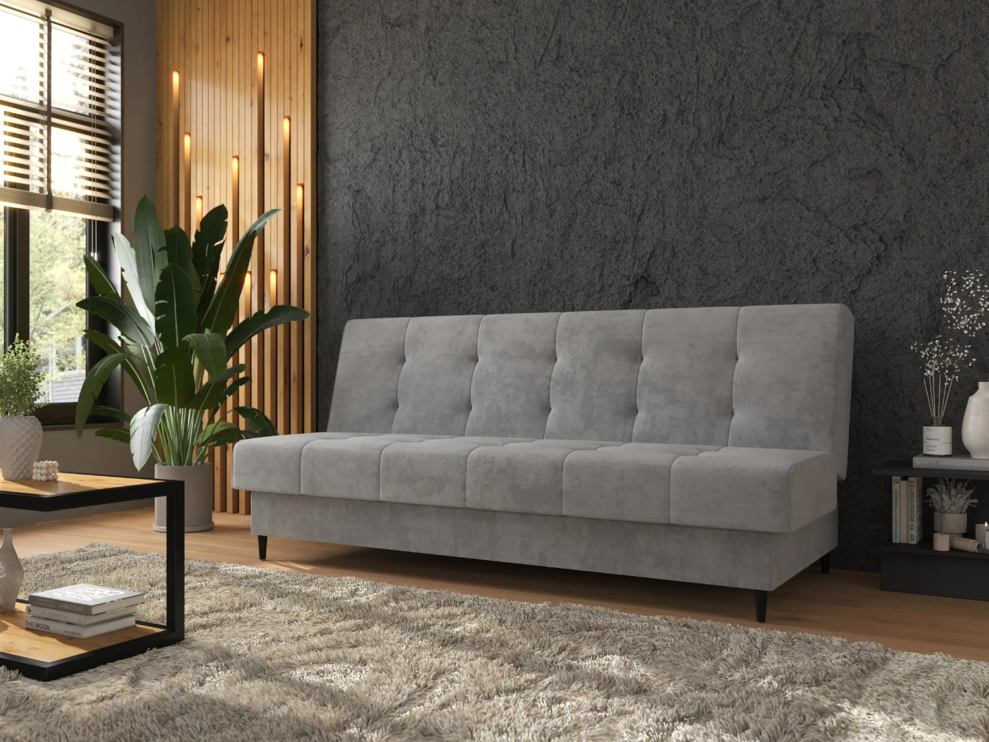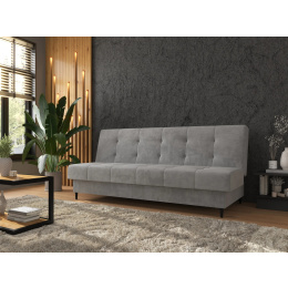 Stylová pohovka NORVIK s funkcí spaní a mechanismem klick-klack, ideální do obývacího pokoje, ložnice nebo denní místnosti. Pohovka NORVIK je moderní volbou pro obývací pokoj, denní místnost nebo byt typu studio. Spojuje minimalistický design, vysoký komfort používání a praktickou funkci spaní, díky čemuž se osvědčí jak během dne, tak v noci jako pohodlné místo k odpočinku. Vysoké, štíhlé kovové nožky dodávají nábytku lehkost a eleganci, a zároveň zajišťují stabilitu konstrukce. Čalouněné sedadlo a opěradlo jsou ozdobeny dekorativním prošíváním a jemným prošíváním, které zdůrazňují jeho moderní charakter. Čalounění z velurové tkaniny vypadá mimořádně efektně a je příjemné na dotek. Funkce spaní v pohovce NORVIK je založena na osvědčeném mechanismu klick-klack, který umožňuje rychlé a bezproblémové rozložení nábytku do ležící polohy. To ideální řešení, když potřebujete další místo na spaní pro sebe nebo hosty. Celá plocha na spaní byla vybavena bonellovými pružinami, což zaručuje pohodlí, správnou oporu pro tělo a trvanlivost na dlouhá léta. Navíc se pod sedákem nachází praktický úložný prostor na ložní prádlo, který usnadňuje organizaci a ukládání textilií. Pohovka NORVIK je skvělou volbou pro osoby hledající odpočinkový nábytek s elegantním vzhledem, kompaktními rozměry a plnou funkčností pro spaní. Ať už zařizujeme malý byt, nebo chceme osvěžit obývací pokoj – tento model se skvěle hodí do moderního interiéru. Vlastnosti produktu automatický mechanismus klik-klak umožňuje rychlou a pohodlnou přeměnu pohovky na postel, celá plocha na spaní je vyplněna bonellovými pružinami, což zajišťuje komfort a trvanlivost, funkční úložný prostor na ložní prádlo umožňuje ukládat deky, polštáře a další textilie, opěradlo a sedák zdobí elegantní, vertikální prošívání, které dodává nábytku moderní charakter, vysoké kovové nožky dodávají vizuální lehkost a usnadňují udržování čistoty pod nábytkem, pohovka je potažena měkkou na dotek sametovou látkou, která vypadá stylově a útulně, zadní část pohovky je pokryta černým technickým materiálem (wigofil), který maskuje úložný prostor na ložní prádlo. Rozměry pohovky: plocha na spaní: 190 × 120 cm, šířka: 198 cm, hloubka: 90 cm, výška: 95 cm, výška sedáku: 46 cm, hloubka sedáku: 55 cm, výška opěradla: 55 cm, výška nožek: 13 cm. *Všechny rozměry jsou uváděny s tolerancí +/- 3 cm