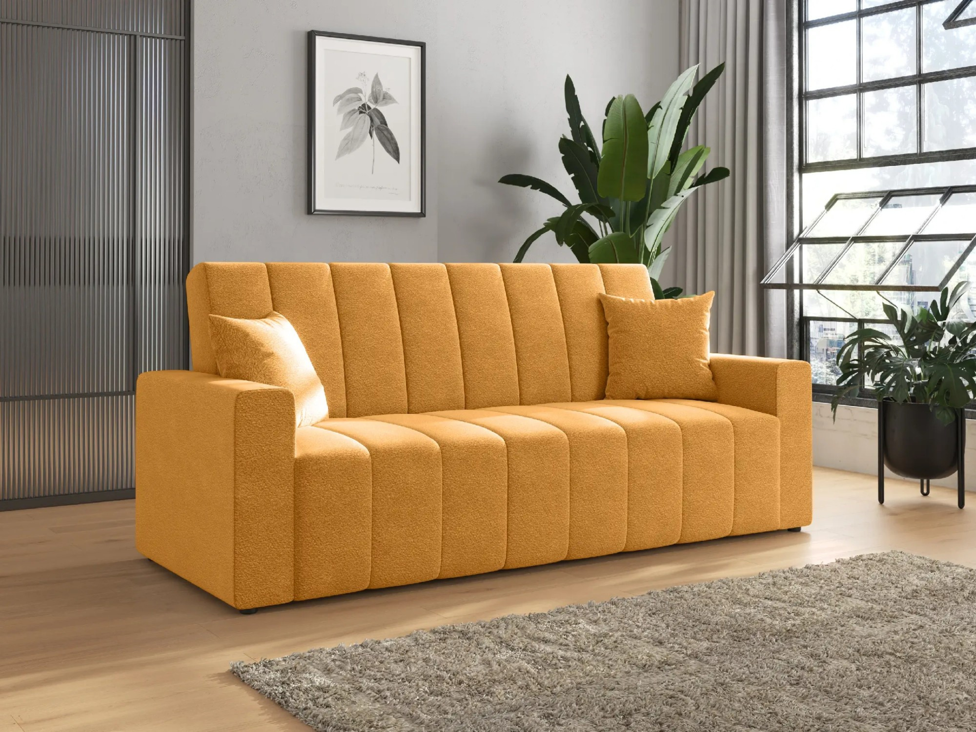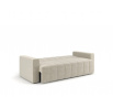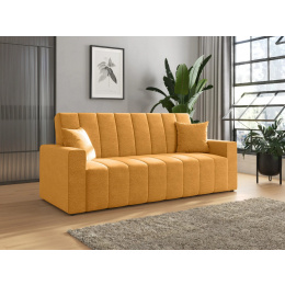 Čalouněná pohovka NUBI s úložným prostorem – stylový minimalismus a pohodlí v jednom Rozkládací pohovka NUBI je určená pro milovníky moderního designu, kteří si cení funkčnosti a elegantního vzhledu. Charakteristické, široké vertikální prošívání dodává dynamický charakter a způsobuje, že nábytek přitahuje pozornost v každém uspořádání. Silné boky a jednotná forma zdůrazňují minimalistický, a přitom útulný styl pohovky, který dokonale zapadá do současných interiérových trendů. Model NUBI je skvělým řešením jak pro každodenní relaxaci, tak pro příležitostné spaní. Automat Klik-Klak umožňuje snadno přeměnit pohovku na pohodlnou postel a vestavěný úložný prostor na ložní prádlo usnadňuje udržování pořádku. Díky pečlivému provedení a použití bonellových pružin na celé ploše sedáku a opěradla, pohovka nabízí vysoký komfort používání – bez ohledu na denní dobu. Pokud hledáte moderní pohovku na každodenní spaní, která kombinuje funkčnost s estetikou, model NUBI splní vaše očekávání. Dostupná v mnoha barevných variantách a látkách, stane se harmonickou součástí každého stylového prostoru – od obývacího pokoje po pokoj pro hosty. Vlastnosti produktu Funkce spaní s mechanismem Klik-Klak – pohodlné a rychlé rozložení pohovky během několika sekund, Pružiny bonell po celé ploše sedáku a opěradla zajišťují pružnou a trvanlivou oporu, Pevná konstrukce z masivního dřeva a nábytkové desky zajišťuje stabilitu a dlouhou životnost nábytku, Prostorný úložný prostor na ložní prádlo skrytý pod sedákem usnadňuje organizaci prostoru, Moderní, vertikální prošívání na sedáku, opěradle a bocích dodává eleganci, Silné, čalouněné boky zvyšují komfort používání a dodávají nábytku solidní vzhled, Možnost výběru látky a barvy z široké palety vysoce kvalitních materiálů, Zadní část pohovky je dokončena černým technickým materiálem (wigofil) – maskuje úložný prostor a umožňuje umístění ke zdi. Rozměry pohovky, plocha na spaní: 190 × 120 cm, šířka: 217 cm, hloubka: 90 cm, výška: 95 cm, výška sedáku: 45 cm, hloubka sedáku: 55 cm, výška opěradla: 55 cm, *Všechny rozměry jsou uváděny s tolerancí +/- 3 cm