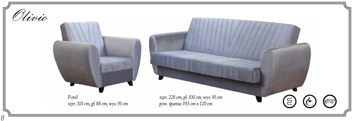 Koupě setu Pohovka Olivio + Křeslo Olivio je investicí do kvality, pohodlí a stylu. Tento set vám bude sloužit po mnoho let a stane se oblíbeným místem pro relaxaci a odpočinek pro celou rodinu. Dopřejte si luxus a pohodlí, které si zasloužíte. Objednejte si set Olivio ještě dnes a proměňte svůj obývací pokoj v oázu klidu a pohody.