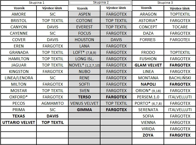 Při objednání sedací soupravy lze vrátku vzorníků realizovat s odečtením zálohy při dodání zboží.