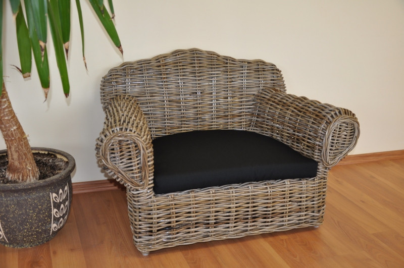Pohovka pro vašeho pejska ručně pletená z ratanu kubu v přírodní šedé barvě. Ratan kubu se vyznačuje vysokou pevností a odolností. Pohovku dodáváme včetně měkkého polštáře. | Velikost pohovky je 90x55x57 cm Velikost vnitřního polštáře je 55x40 cm
