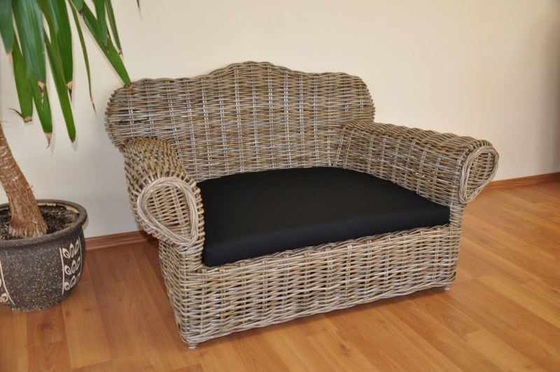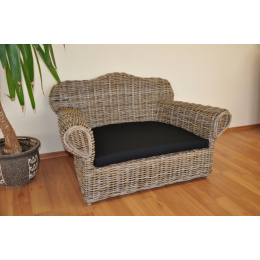 Pohovka pro vašeho pejska ručně pletená z ratanu kubu v přírodní šedé barvě. Ratan kubu se vyznačuje vysokou pevností a odolností. Pohovku dodáváme včetně měkkého polštáře. | Velikost pohovky je 115x75x65 cm Velikost vnitřního polštáře je 80x50 cm