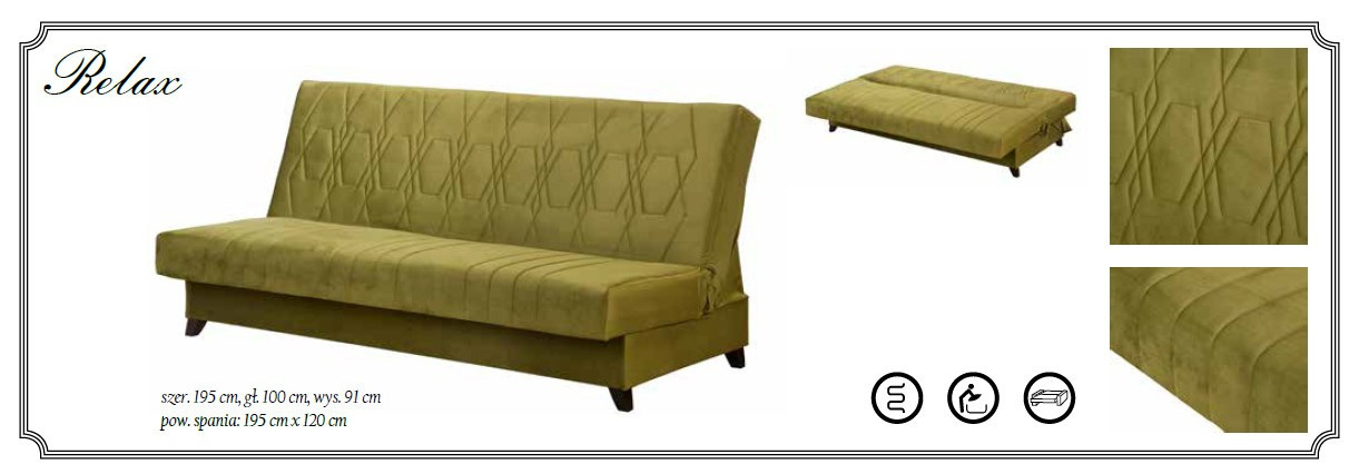 Pohovka Relax je navržena s ohledem na maximální komfort. Její ergonomický design a kvalitní materiály zaručují, že se na ní budete cítit skvěle po dlouhé hodiny. Ať už si chcete zdřímnout, číst si nebo jen tak relaxovat, tato pohovka vám poskytne ideální oporu a pohodlí.