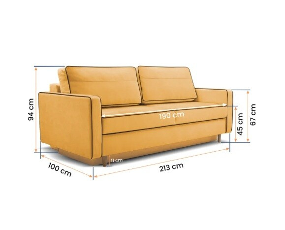Pohovka FASTA je navržena s ohledem na maximální pohodlí a ergonomii. S šířkou 213 cm, maximální výškou 94 cm a hloubkou 100 cm nabízí dostatek prostoru pro relaxaci. Výška sedu 45 cm je ideální pro pohodlné sezení, ať už sledujete oblíbený film, čtete knihu nebo si jen užíváte chvíle odpočinku. Rozklad ke spaní má velikost 190 x152 cm.