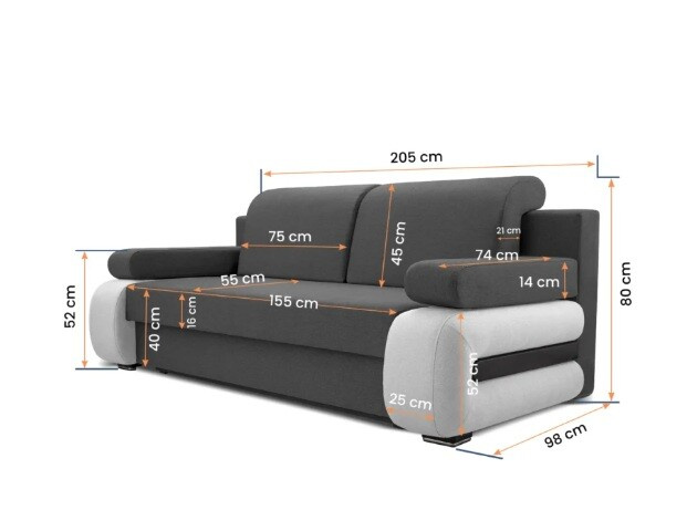 S šířkou 205 cm, maximální výškou 80 cm a hloubkou 98 cm nabízí pohovka Gloria dostatek prostoru pro pohodlné sezení i ležení. Výška sedu 40 cm je optimální pro pohodlné vstávání a sezení, což oceníte při každodenním používání.