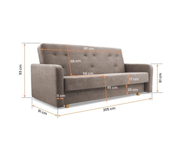 Jednou z hlavních předností této pohovky je její schopnost snadno se proměnit v pohodlné lůžko. Rozkládací mechanismus umožňuje rychlé a jednoduché přeměnění na plochu na spaní o rozměrech 181 x 120 cm. To je ideální pro nečekané návštěvy nebo pro ty, kteří chtějí využít pohovku jako příležitostné lůžko.