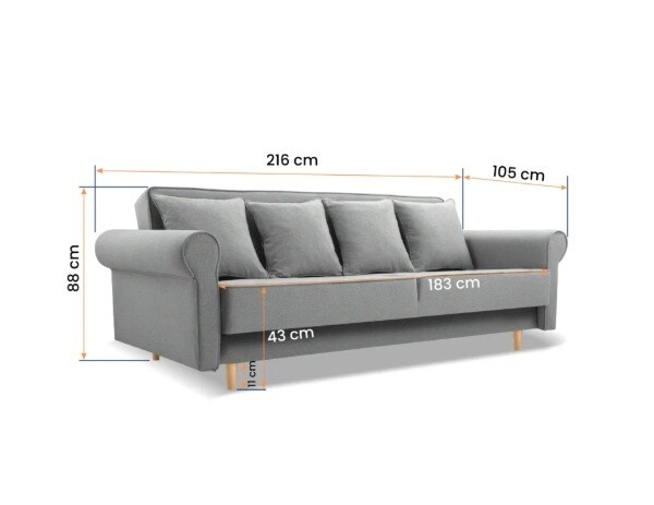 S šířkou 216 cm, maximální výškou 88 cm a hloubkou 105 cm nabízí pohovka KRYSTYNA dostatek prostoru pro pohodlné sezení i ležení. Výška sedu je příjemných 43 cm, což zajišťuje pohodlné vstávání a sezení pro všechny členy rodiny. Díky těmto rozměrům se pohovka snadno vejde do většiny obývacích pokojů, aniž by zabírala příliš mnoho místa.