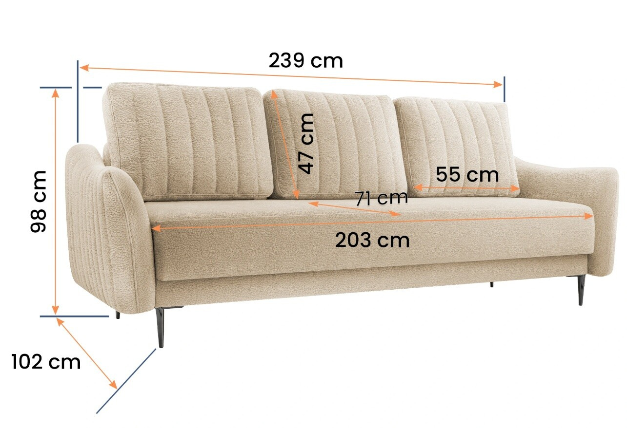 Jednou z hlavních předností této pohovky je její rozkládací funkce, která umožňuje snadno a rychle přeměnit pohovku na pohodlné lůžko s plochou na spaní o rozměrech 203 x 143 cm. Tato funkce je ideální pro hosty nebo pro ty, kteří chtějí využít svůj obývací pokoj jako multifunkční prostor.