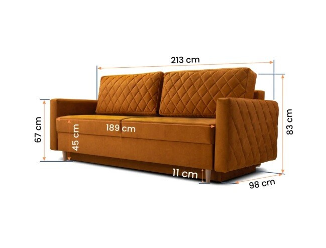 S šířkou 213 cm, maximální výškou 83 cm a hloubkou 98 cm, pohovka LENOLA nabízí dostatek prostoru pro pohodlné sezení i ležení. Její minimalistický design a kvalitní materiály zajišťují, že se snadno začlení do jakéhokoli interiéru. Výška sedu 45 cm je ideální pro pohodlné vstávání a sezení, což oceníte při každodenním používání.