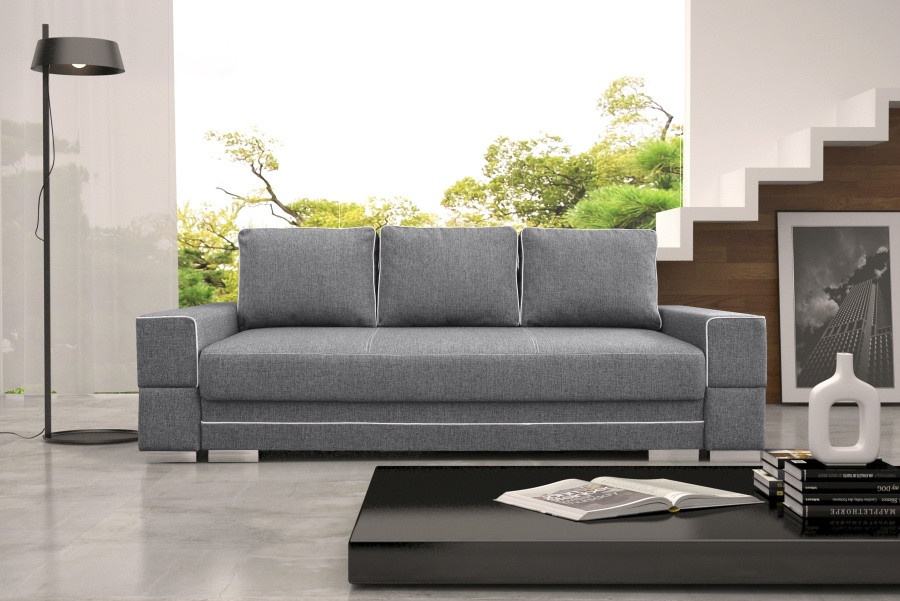Pohovka Sabina je určena pro ty, kteří mají rádi komfort a originalitu. Kombinace pružin faliste a bonell s kvalitní PUR pěnou, zajišťují velmi pohodlné sezení. Pohovka je rozkládací a má také praktický úložný prostor. Jednoduchým rozkladem pomocí automatu vznikne lůžko vhodné k příležitostnému spaní. Pohovku nabízíme v kvalitní potahové látce s elegantním bílým lemováním, a to v několika barevných provedeních, které také naleznete v naší nabídce. V ceně pohovky jsou 3 velké opěrné polštáře. Ostatní vyobrazené dekorace nejsou v ceně.