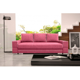SAMANTA A je moderní rozkládací pohovka, která se přes den stane místem odpočinku pro celou rodinu, zatímco v noci se může proměnit v postel a zajistit bezpečný a pohodlný spánek. Kromě funkce spaní je nábytek vybaven úložným prostorem na lůžkoviny, který umožňuje ukládat přikrývky, peřiny a polštáře na jednom místě. Aby bylo rozkládání pohovky snadné a bezproblémové, byla doplněna o automatickou pomůcku pro rozkládání. Dřevěný rám třímístné pohovky zaručuje odpovídající odolnost a pevnost kusu nábytku - sedák a opěrák jsou vyplněny vlnitými pružinami a bonellovými pružinami, díky nimž si kus nábytku zachová odpovídající pružnost a nebudou na něm nevzhledné promáčkliny. Čalouněný kus nábytku stojí na chromových nožkách, které mu dodávají originální charakter. Volně stojící kus nábytku je celý čalouněný látkou, jejíž barvy si můžete vybrat. Zajímavým akcentem pohovky SAMANTA A je stylové prošívání na okrajích polštářů umístěných na opěradle a na konstrukci pohovky.