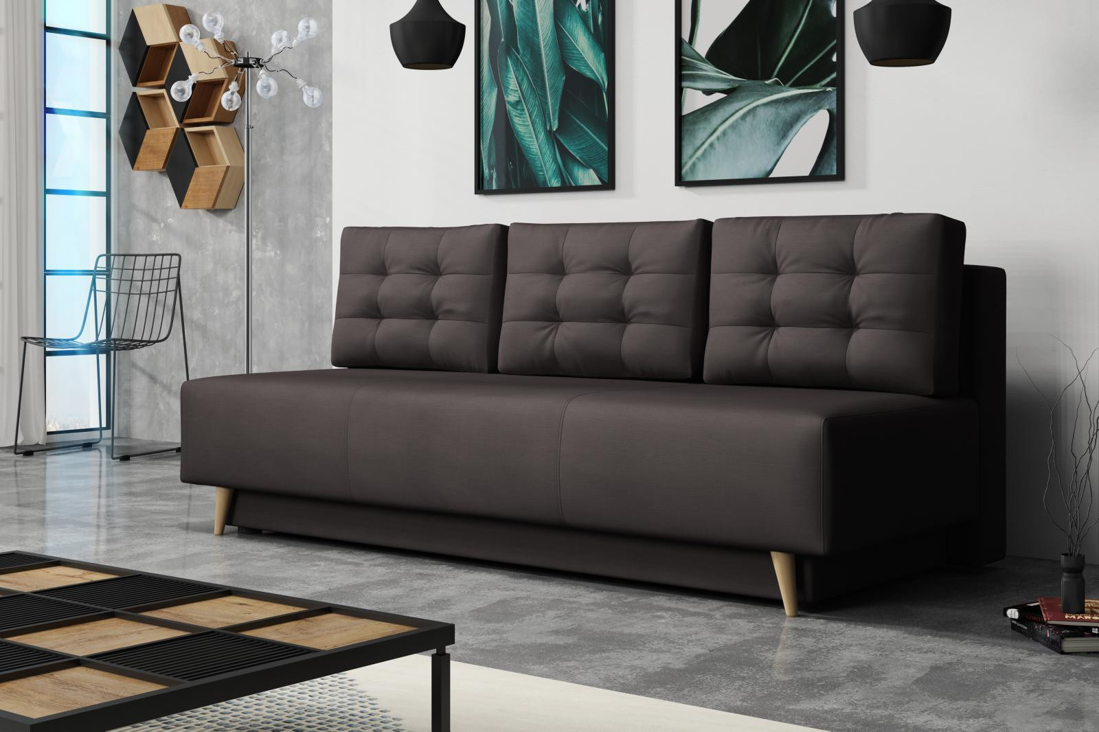 Pohovka Sebastian je elegantním kouskem sedacího nábytku s nádechem RETRO designu a výborně zapadne do každého interiéru. Retro design podtrhují zešikmené dřevěné nohy a látkové knoflíky na opěrných polštářích. Pohovka je rozkládací a samozřejmostí je i nepostradatelný úložný prostor. Jednoduchým rozložením pomocí automatu vznikne dostatečně prostorné lůžko občasnému přespání Vaší návštěvy. Výplň sedáku tvoří pružiny bonell a kvalitní PUR pěna. Pohovka je celočalouněná, takže ji můžete umístit i do prostoru. Výborně se hodí do obývacího pokoje, do pracovny či pokoje pro hosty. Pohovku nabízíme v několika trendy barvách. Vyobrazené doplňky a dekorace nejsou v ceně. Zobrazení barev produktu na fotografii se může nepatrně lišit od skutečnosti.